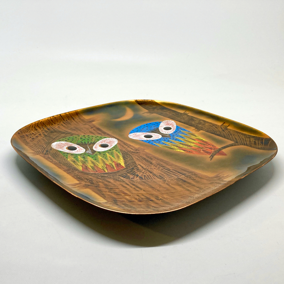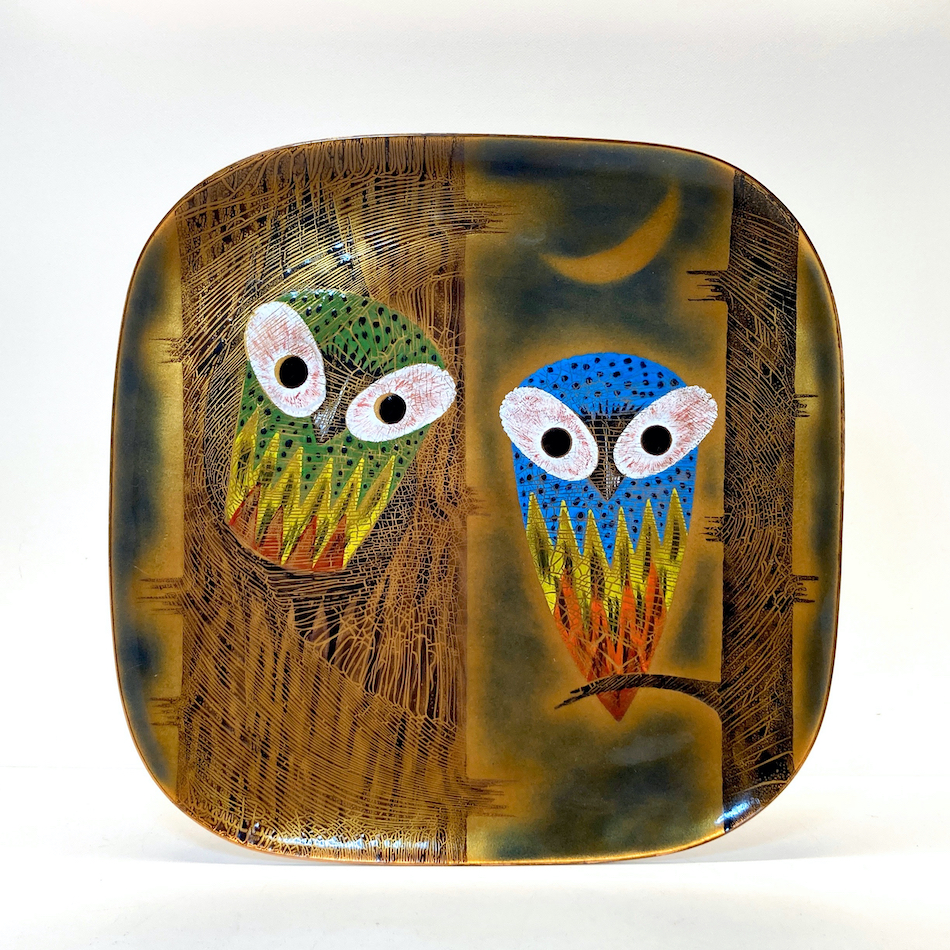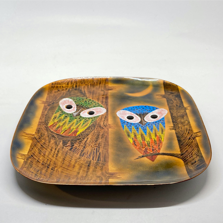 60’s Mexico “Miguel Pineda” Copper / Enamel “Owl” Art Plate