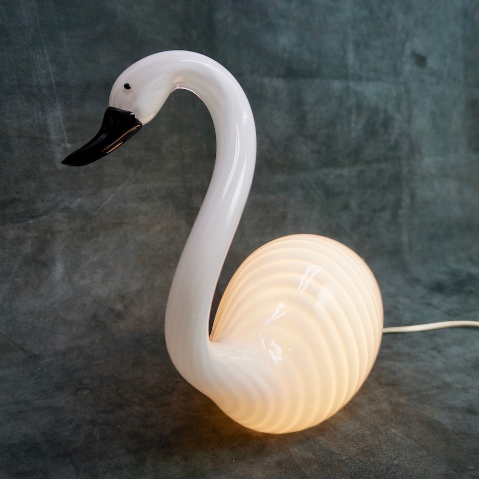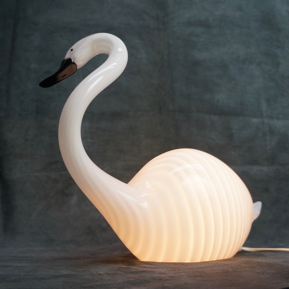 Murano Italy “ZANETTI/ザネッティ”工房を創設した作家”Licio Zanetti / リシオ・ザネッティ”が制作したガラス製スワンランプ。