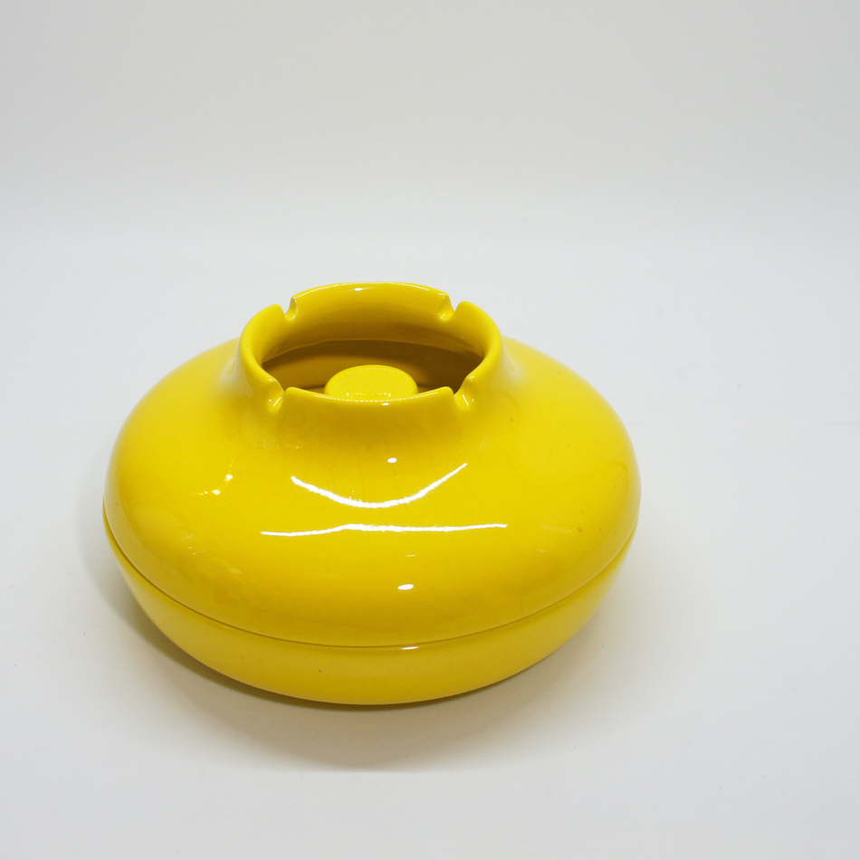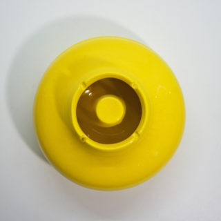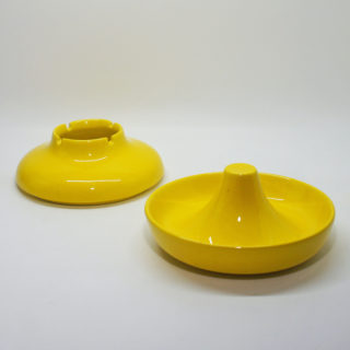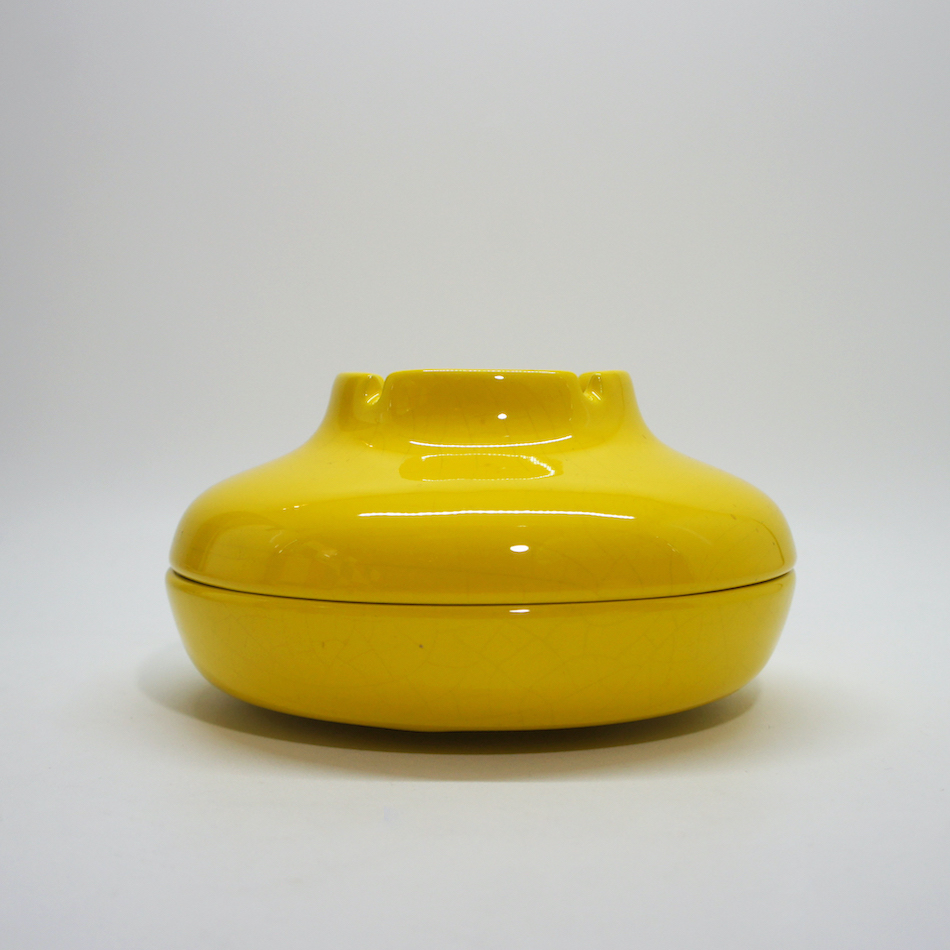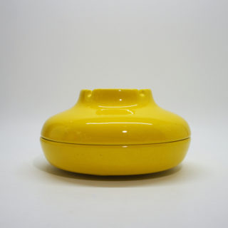 鮮やかなイエローカラーのUFOのようなフォルム、上半分が蓋のように外れる構造で、ディテールまで美しい隙のないデザイン。<br>