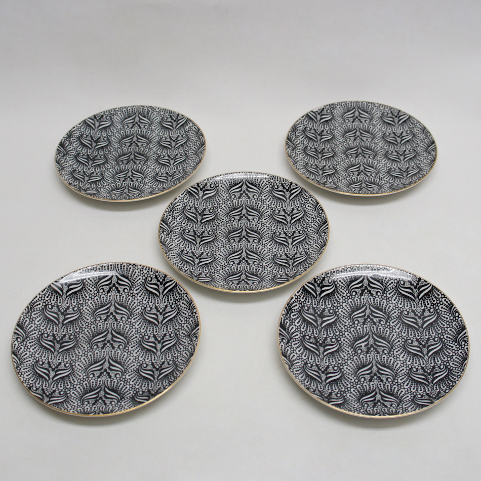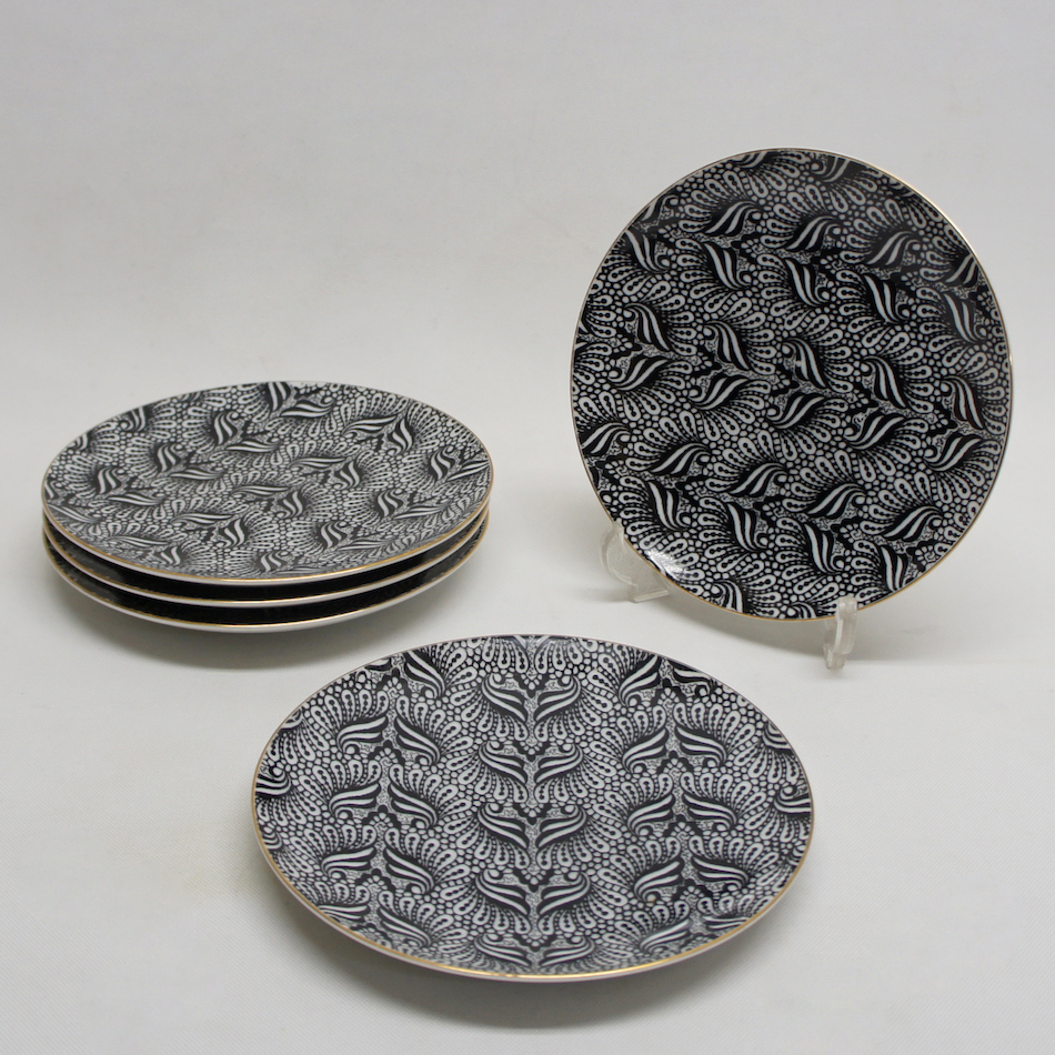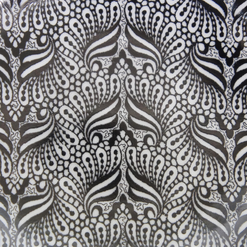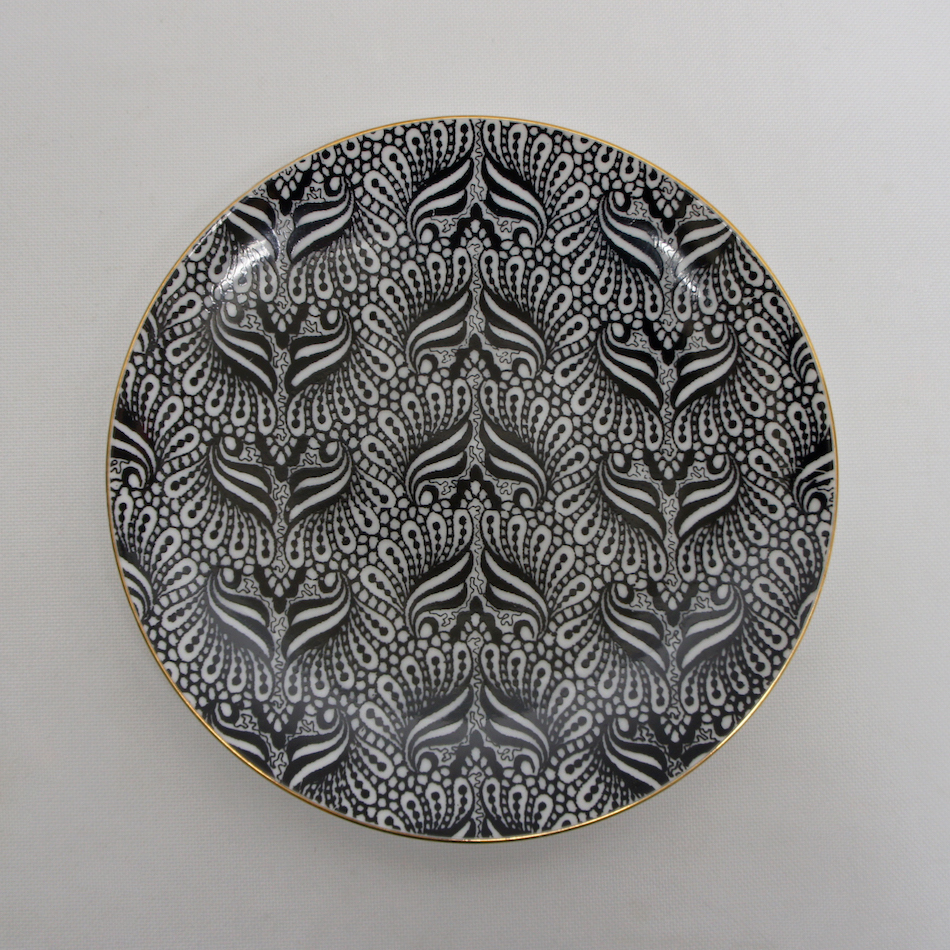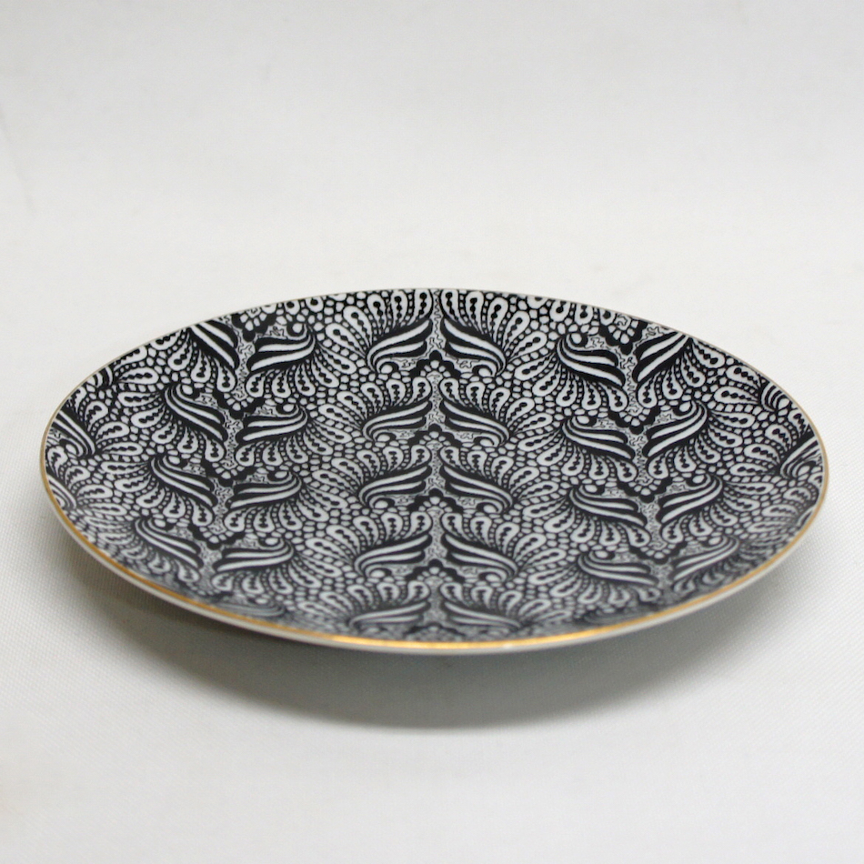 和風から和モダンなデザインの多い “SEYEI”の商品の中にあってそのデザインは飛び抜けて異端。ヒッピーカルチャーの流行を取り入れ、モノトーンのサイケパターンを皿全面に配した、当時としては相当挑戦的な試みであったと想像できます。
