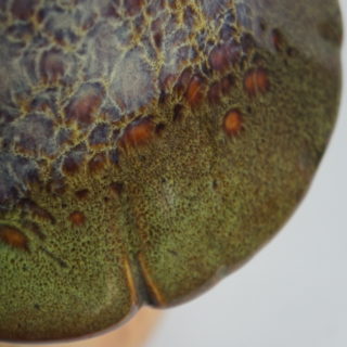 笠にかけられた釉薬は当時のヒッピームーブメントを物語るサイケデリックで幻惑的な模様を描いています。高さ35cmと巨大なサイズも相まって独特な存在感。