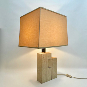 建材や美術装飾品に利用される高級石材「トラヴァーチン」を使用したテーブルランプ。