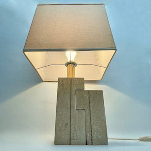 トラバーチンの独特の質感、ユニークなギミック、洗練されたフォルムなど、それぞれの要素がイタリアらしい遊びと粋を体現するテーブルランプです。