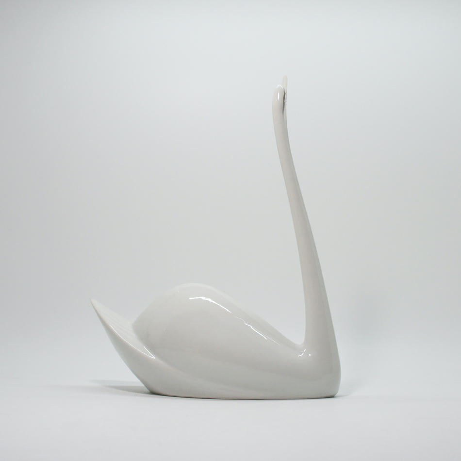 ボリューム感のある胴体から細く長く真上に伸びる首に繊細に造形された頭部と嘴。ミニマルでありながら白鳥のエレガントなイメージを見事に表現しています。