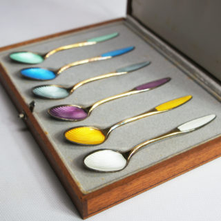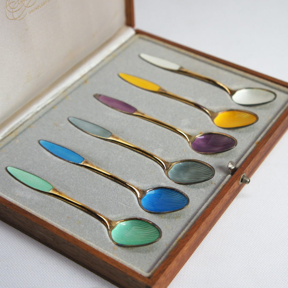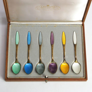 1841年創業、デンマークの老舗宝飾メーカー “Anton Michelsen / アントン・ミケルセン” のエナメル & シルバースプーン6Pセット。