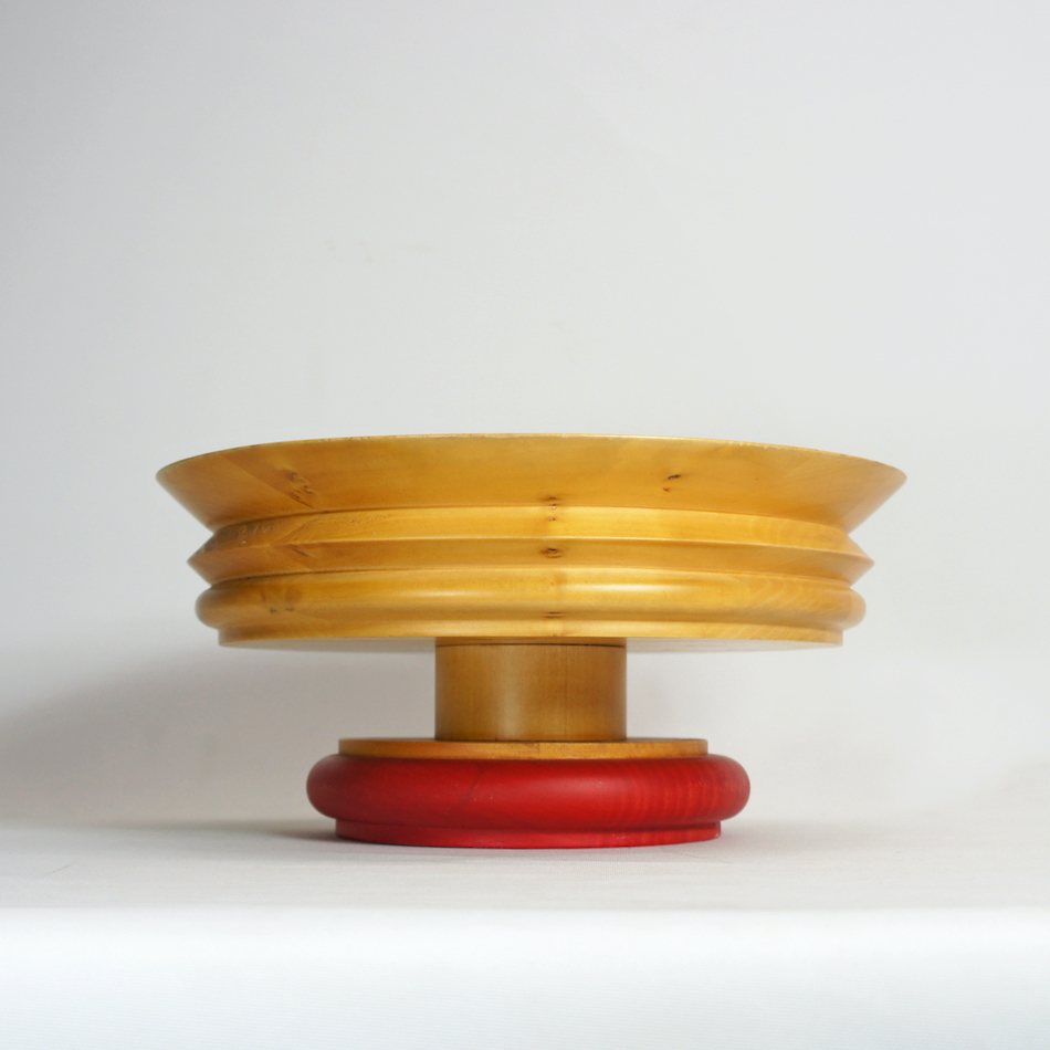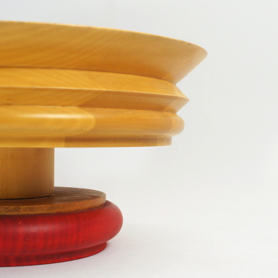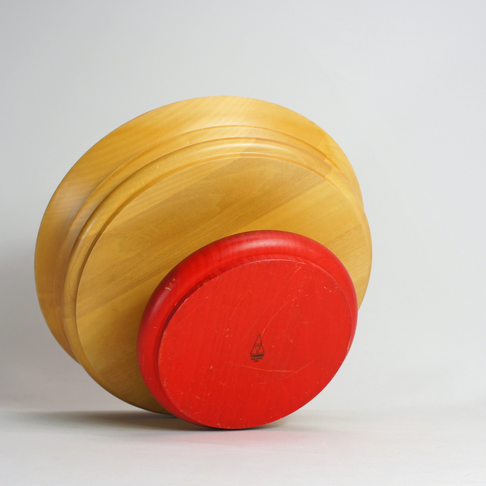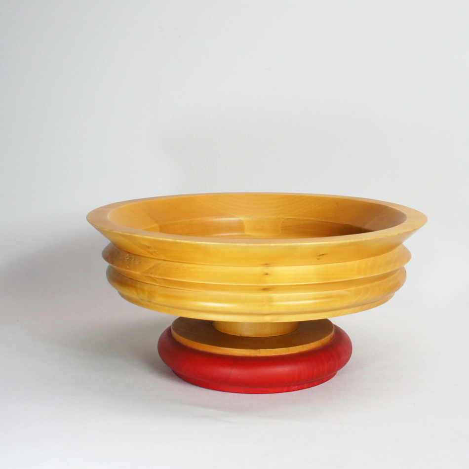 “ES14 “は、その中心となった”E.ソットサス”がデザインした木製ボウル。ステムを持つ大胆なジグザグのレイヤーフォルム。ベース部のレッドカラーと木肌を活かした意匠はソットサスならでは。