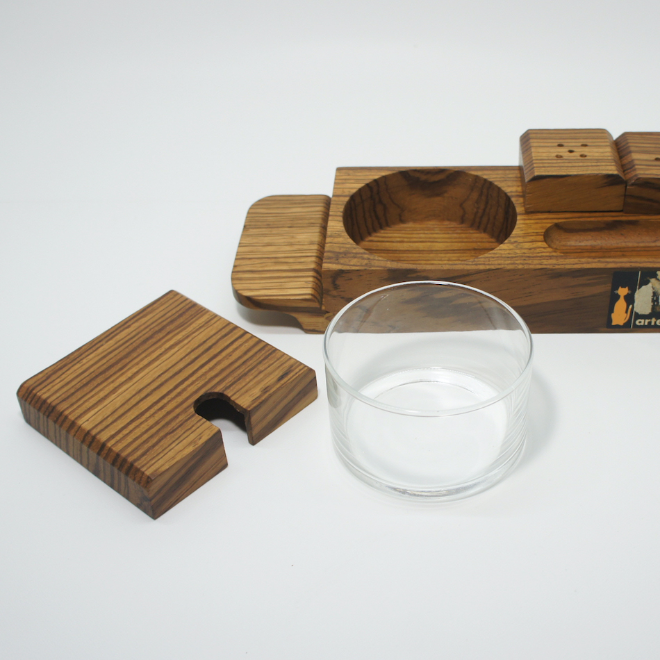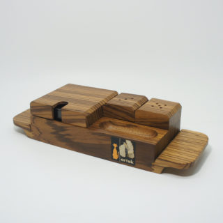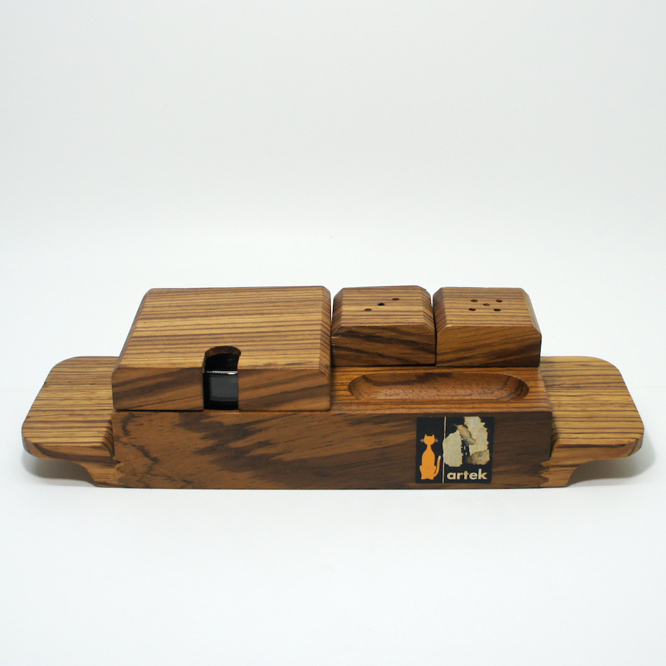 かつて”artek / アルテック”から販売されていたゼブラウッド製のコンディメントセット。