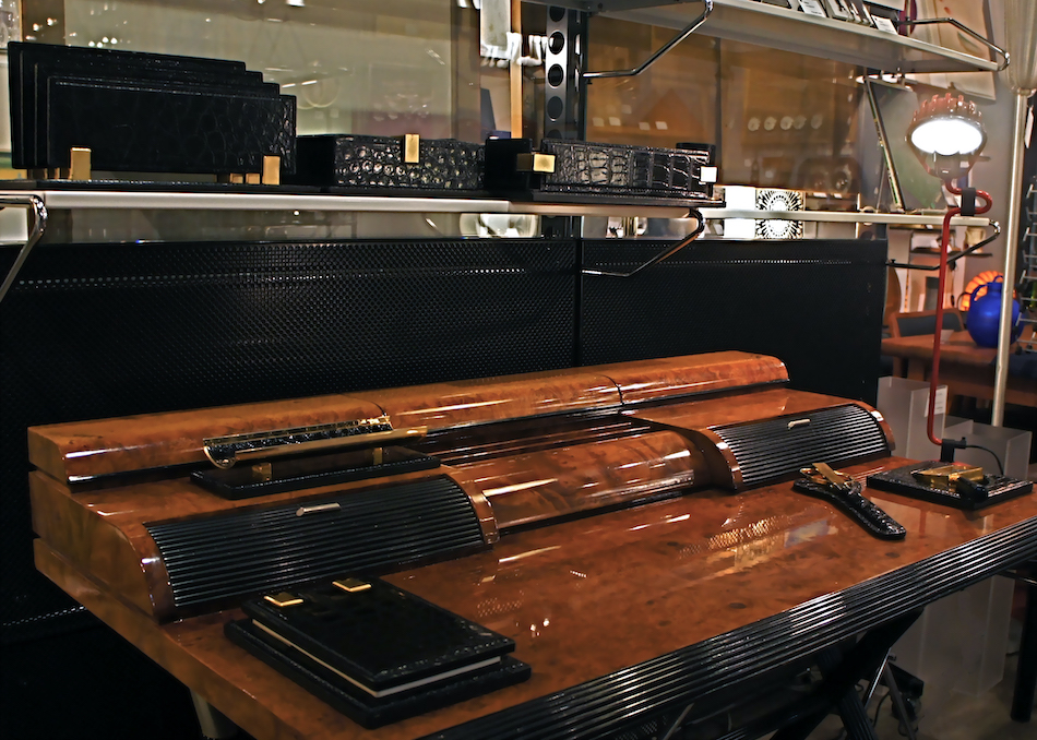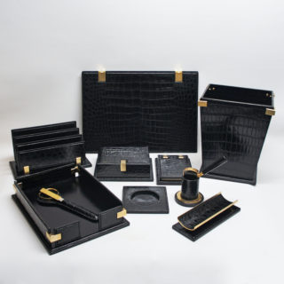 フランス パリの高級鞄ブランド”Marius Patte / マリウス パット”クロコダイルレザーのエグゼクティブ デスクアクセサリー11ピースセット。