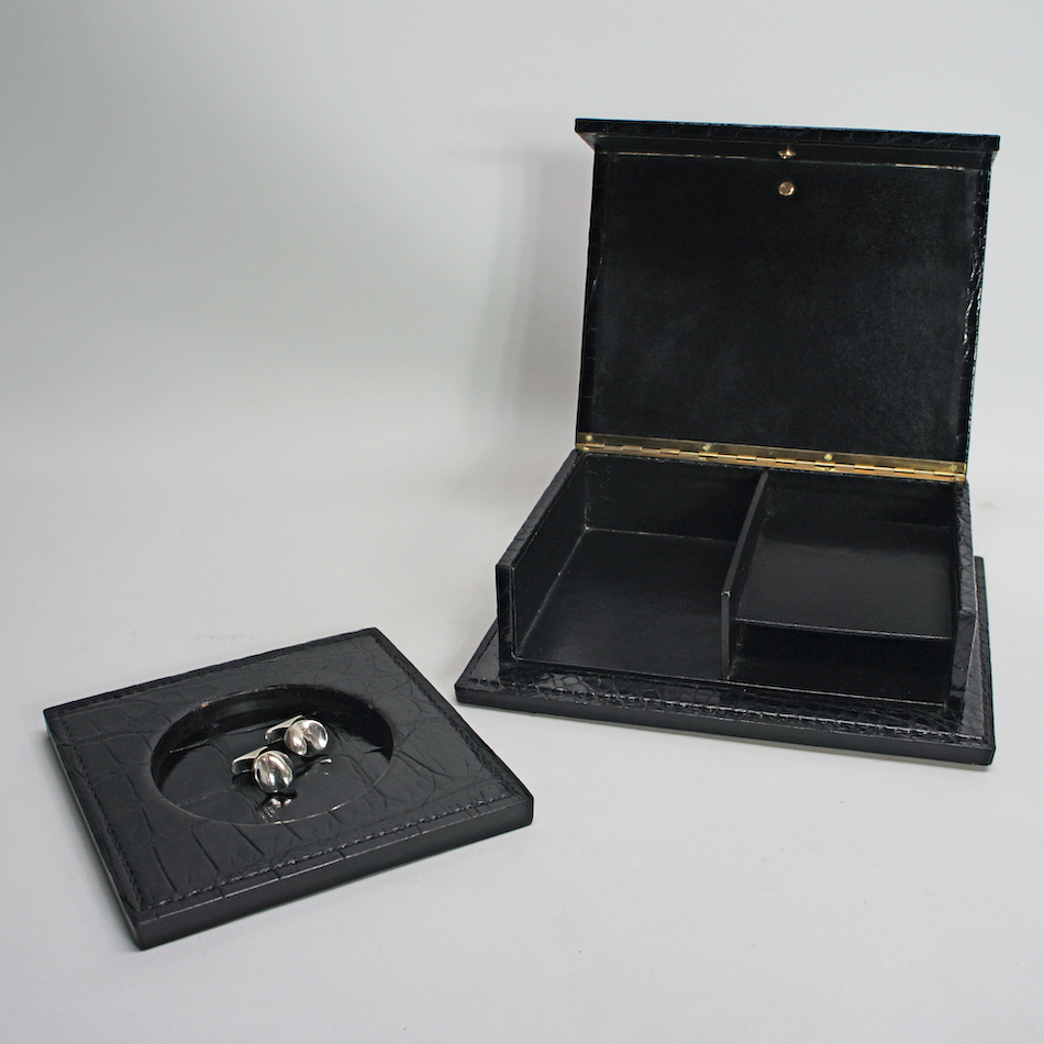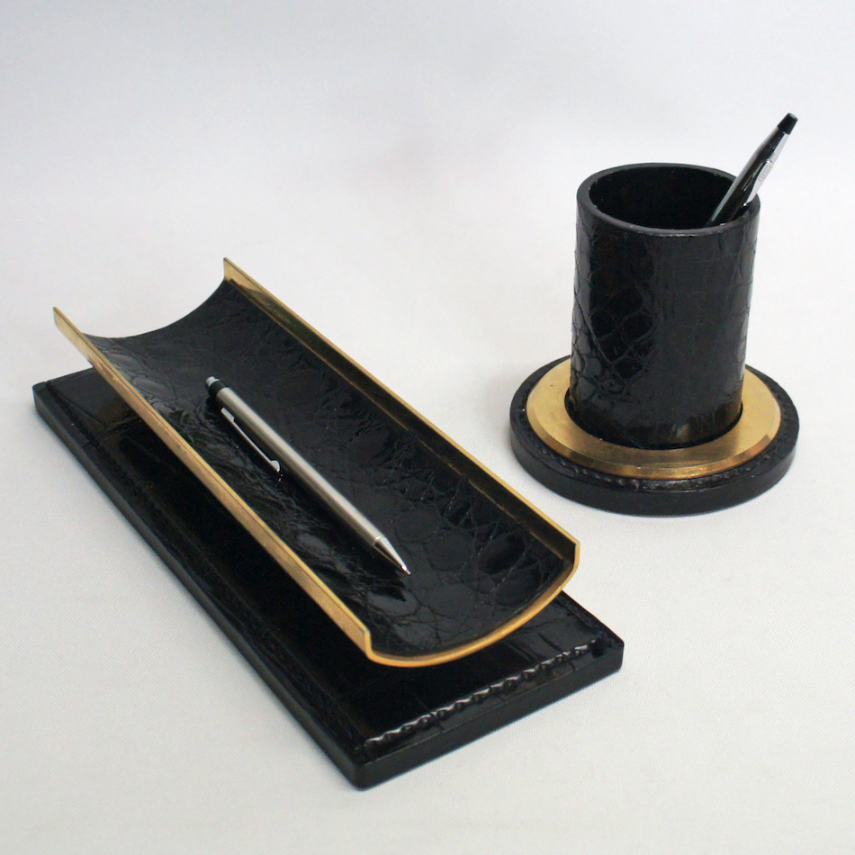 France “Marius Patte” Crocodile Leather Desk Accessories