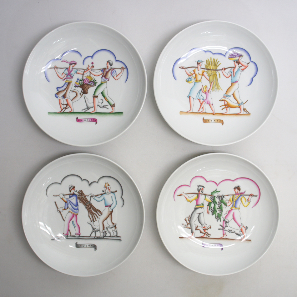 “Gio Ponti / ジオ・ポンティ”が”Richard Ginori /リチャード・ジノリ”社のアートディレクターを務めた1920年代にデザインした「Le Quattro Stagioni / 四季」シリーズのプレート4点セット。当アイテムはジノリ社が90年代に復刻生産した一連の製品の一つ。