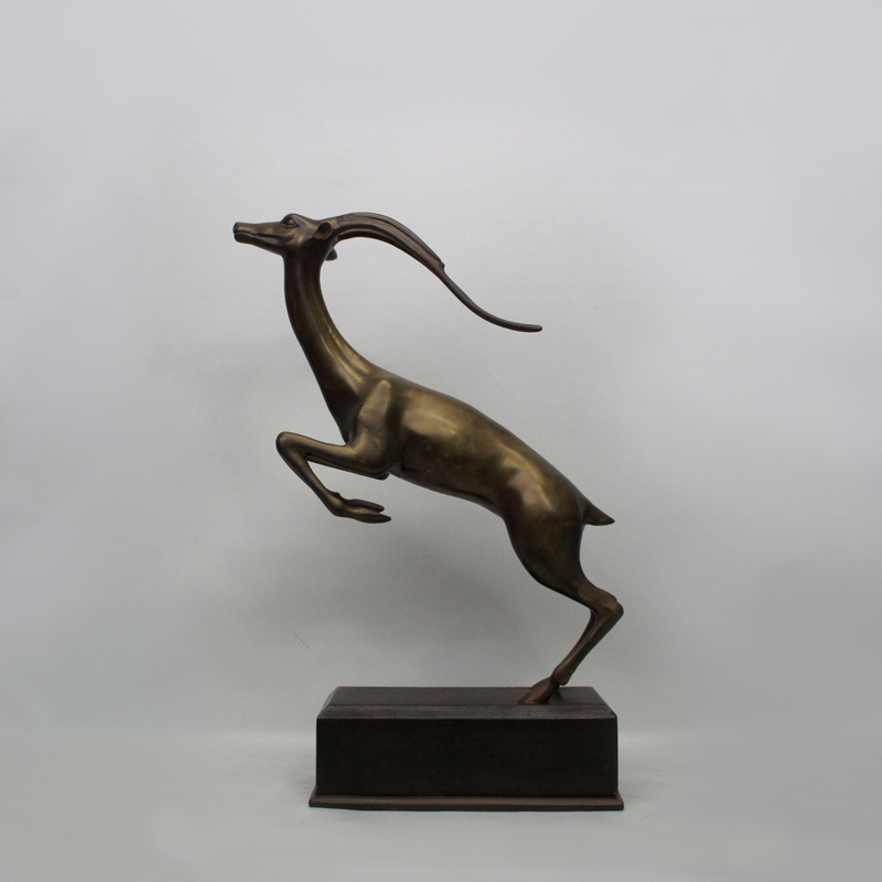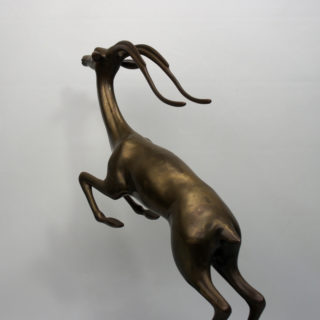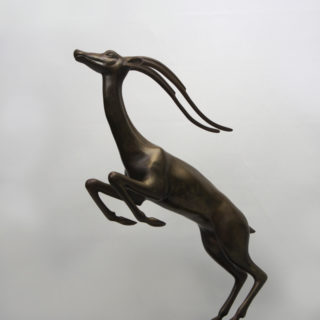 本作は、サバンナ屈指のジャンプ力を誇るインパラをモチーフに、躍動感溢れる跳躍の瞬間を見事に表現。竪琴形の角や、しなやかな筋肉を端正に造形。型に流し込みで造られた量産品では有りますが、豪華さと存在感のあるインテリアオブジェです。<BR>