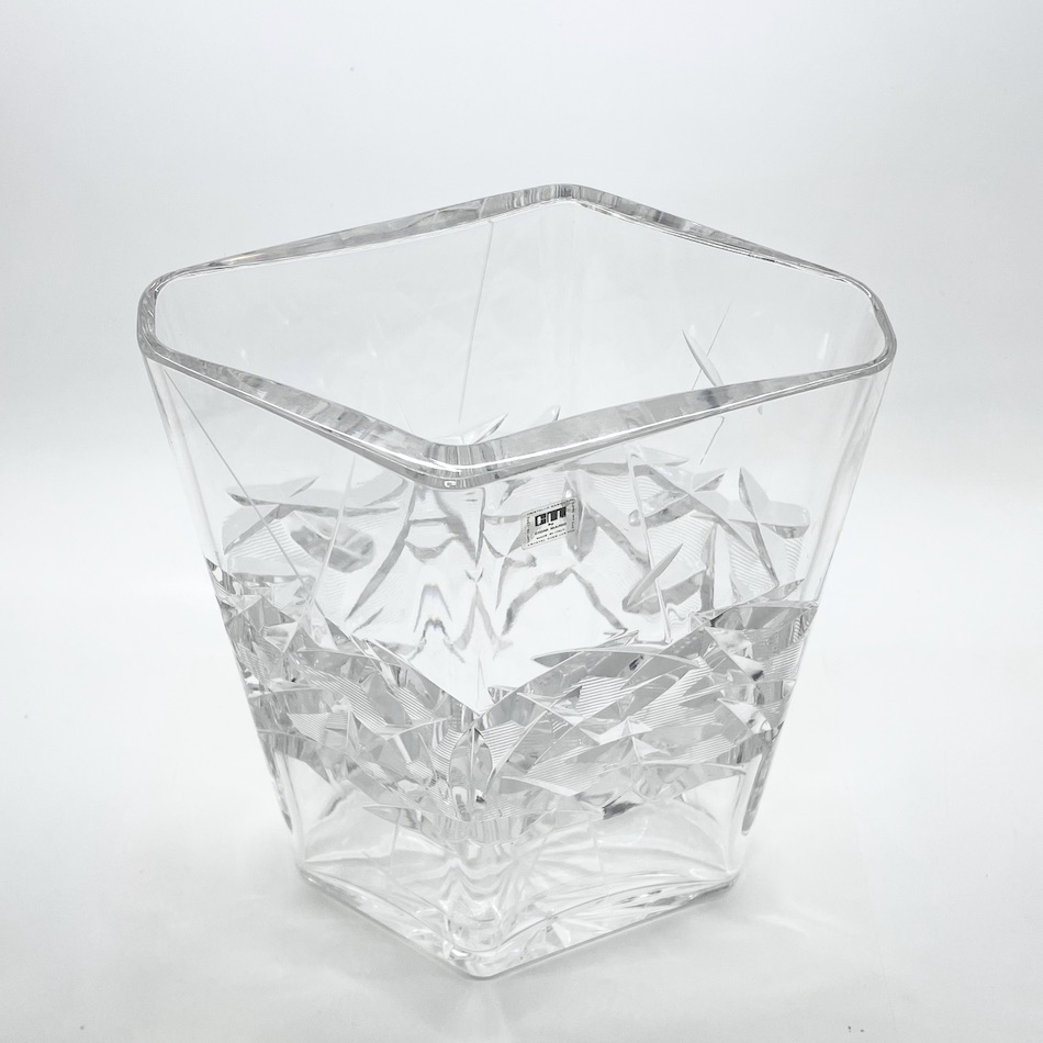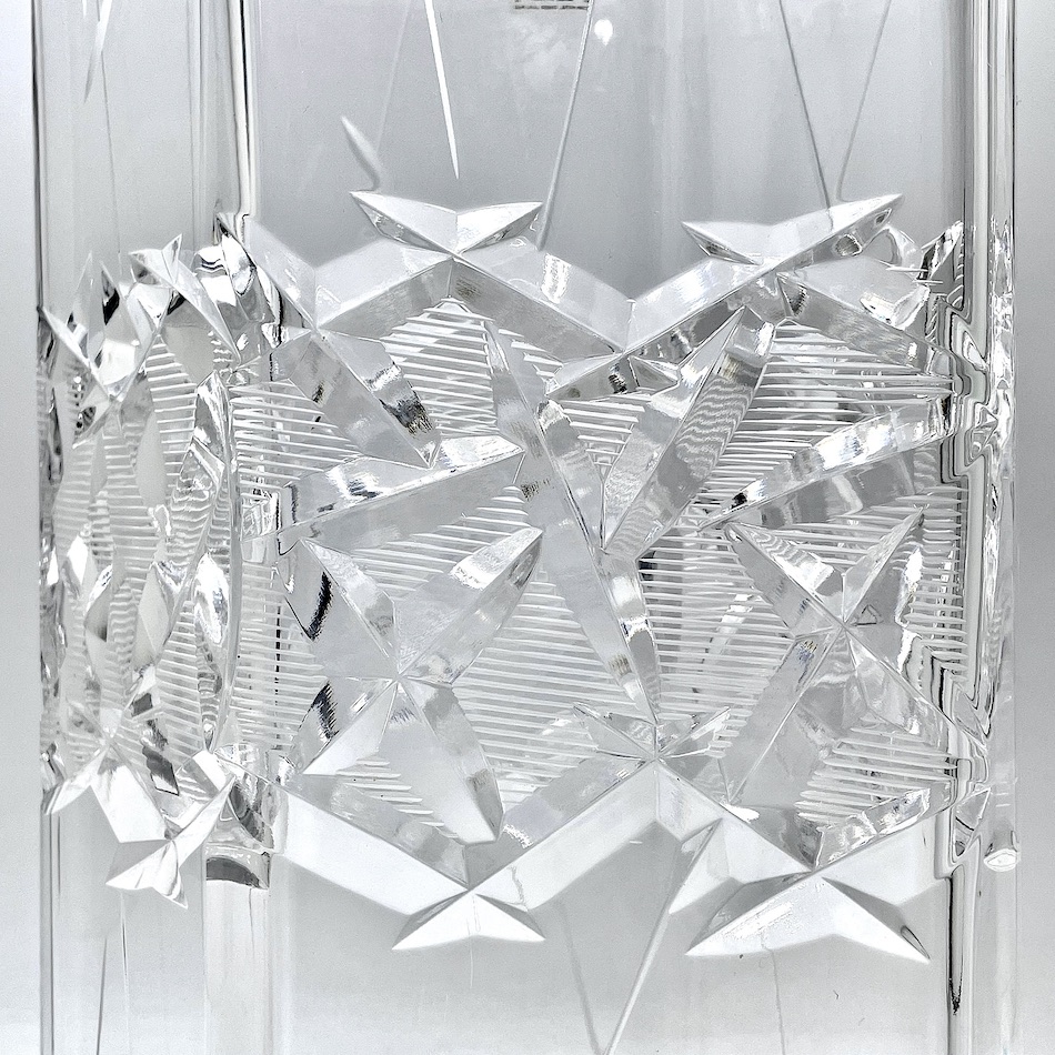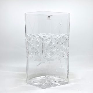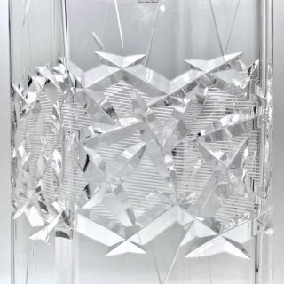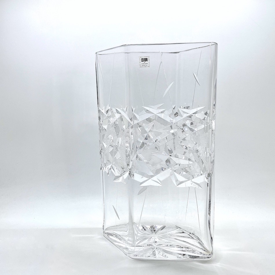 シンプルなフォルムと印象的なカット模様が同居し、さりげない高級感を醸し出すアートクリスタルベースです。