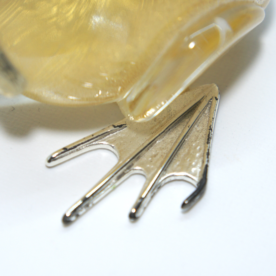 それぞれゴールドとシルバーのボディーに金属製の目玉と樹脂の足がついた手のひらサイズ約10cmほどのカエルのペア。
