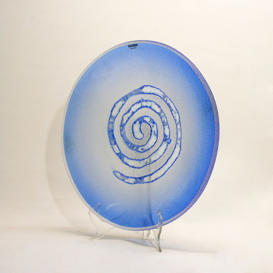 Murano Italy “Alfredo Barbini ” Scavo Glass Plate (Blue)