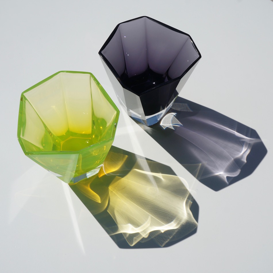 歪な8角形のフォルムは、口縁からボトムに向けて鋭くテーパードされた直線的で都会的なルックス。