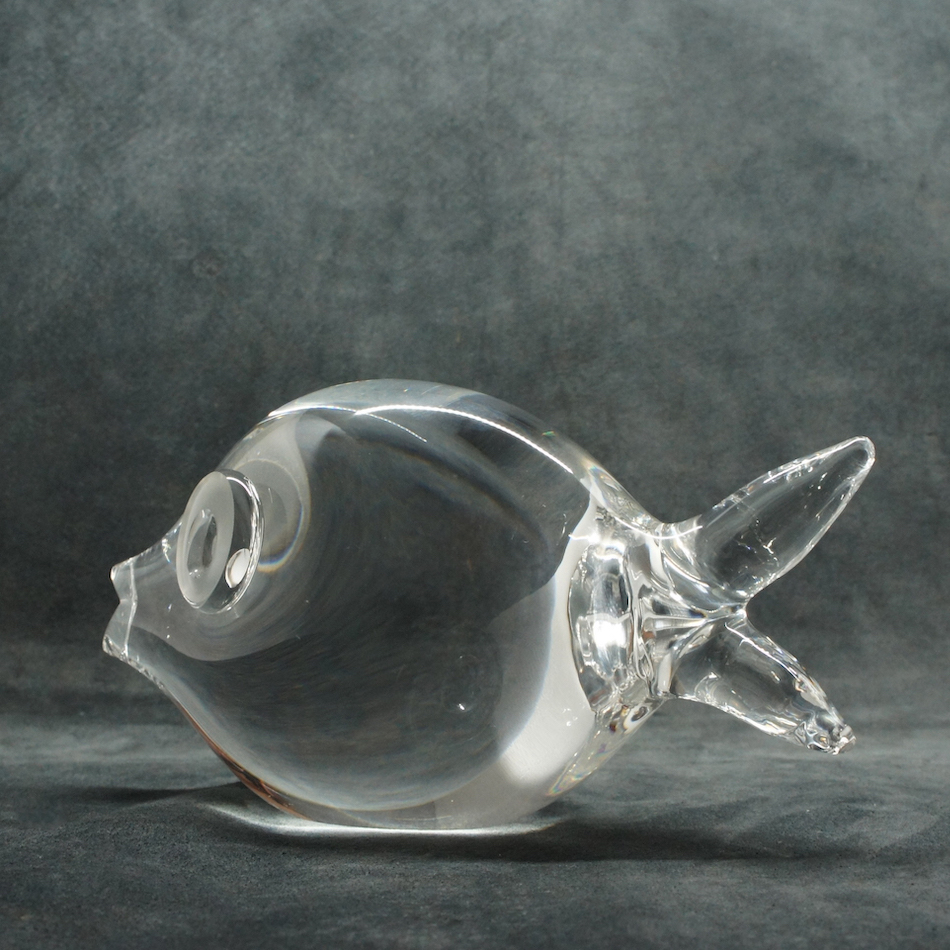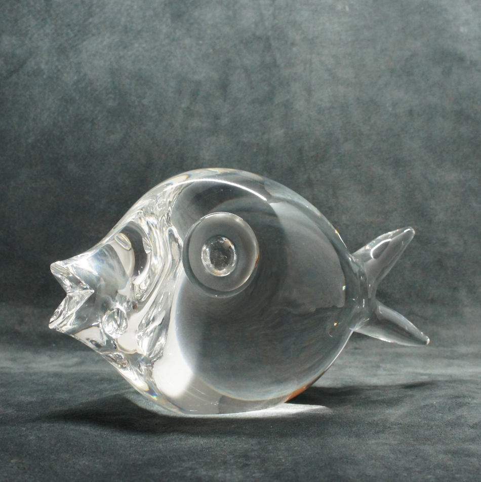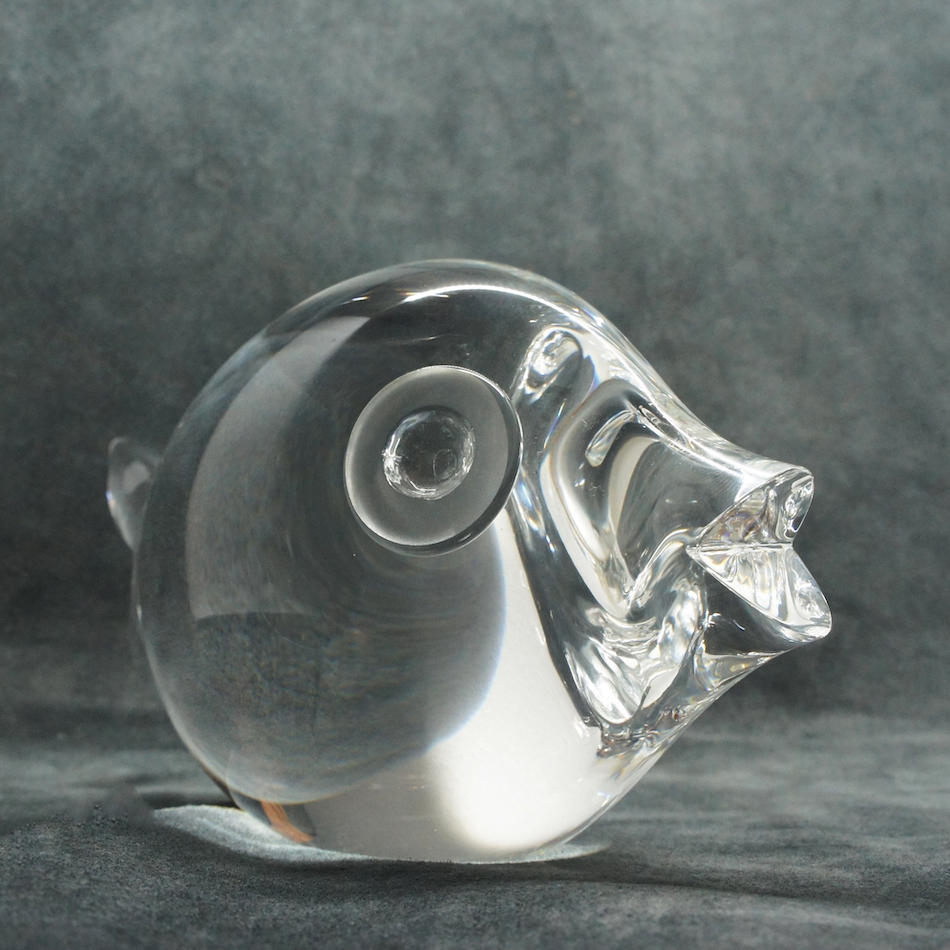 U.S.A “Steuben / スチューベン” Glass のクリスタルフィッシュ”Puffer Fish = フグ “。デザインを手がけたのはスチューベン社を代表する作品を数多く送り出した”George Thompson / ジョージ・トンプソン”。<br>
