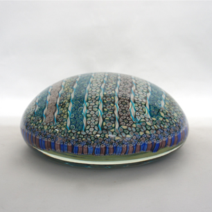 ペーパーウェイトはムラノ土産の定番として良く知られているものですが、特筆すべきはその大きさ。数センチ程度のものは新旧あわせて数多く有りますが、20センチオーバーの特大サイズはあまりに希少。上から被せたガラスの中には数百ものトンボ玉が封じ込められている圧巻の創り。<br/>