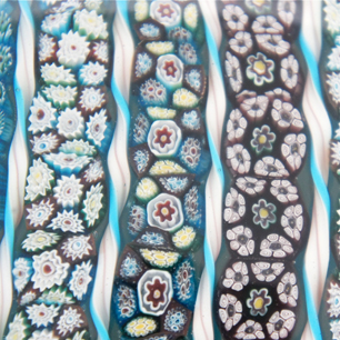 日本には江戸時代に輸入され現在まで「トンボ玉」の名で親しまれている”Millefiori(ミルフィオリ/千の花)”<br/>