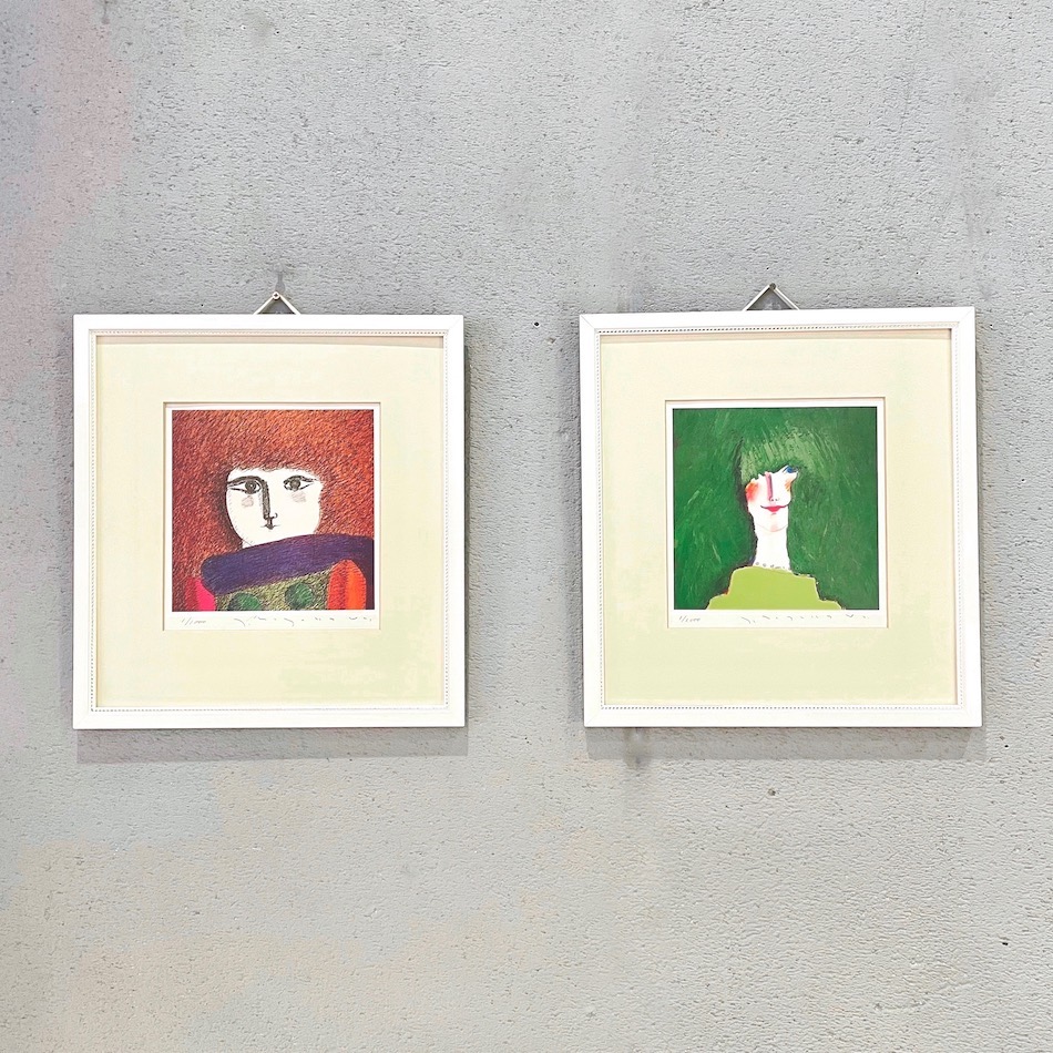 戦後日本のグラフィックデザイン界を牽引したの巨匠 “早川良雄”が1985年より創作を始めたライフワークアート「女の顔」シリーズのLimited Edition エスタンプ 額装 2点。