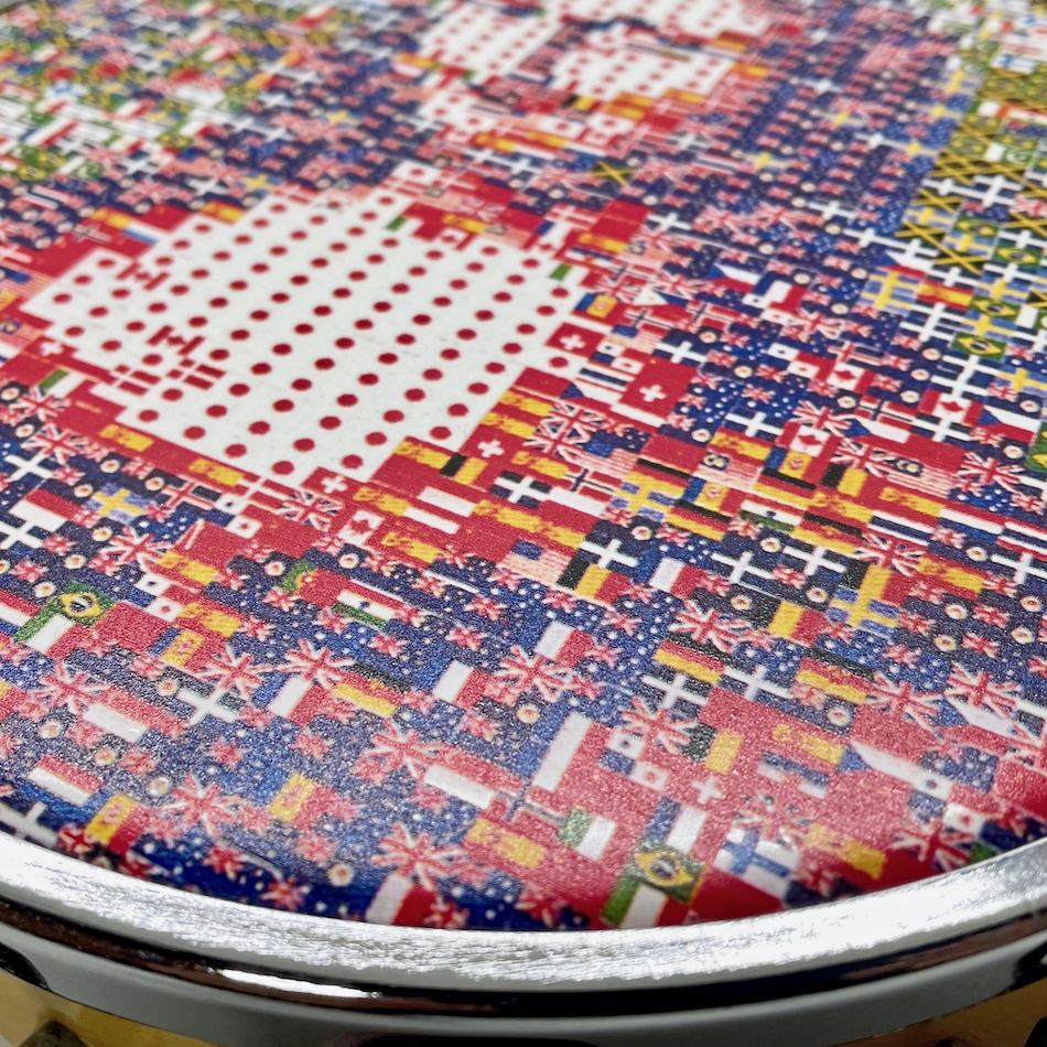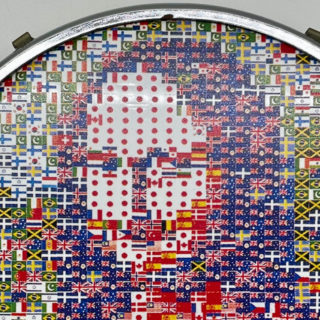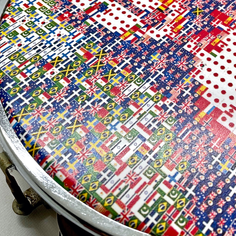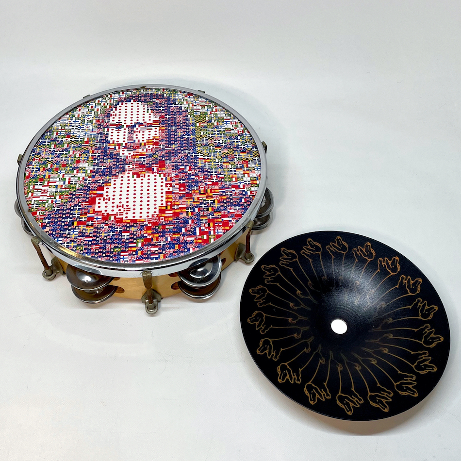 福田繁雄 オリジナルGoods 試作品「万国旗のモナリザ」シルクプリント タンバリン