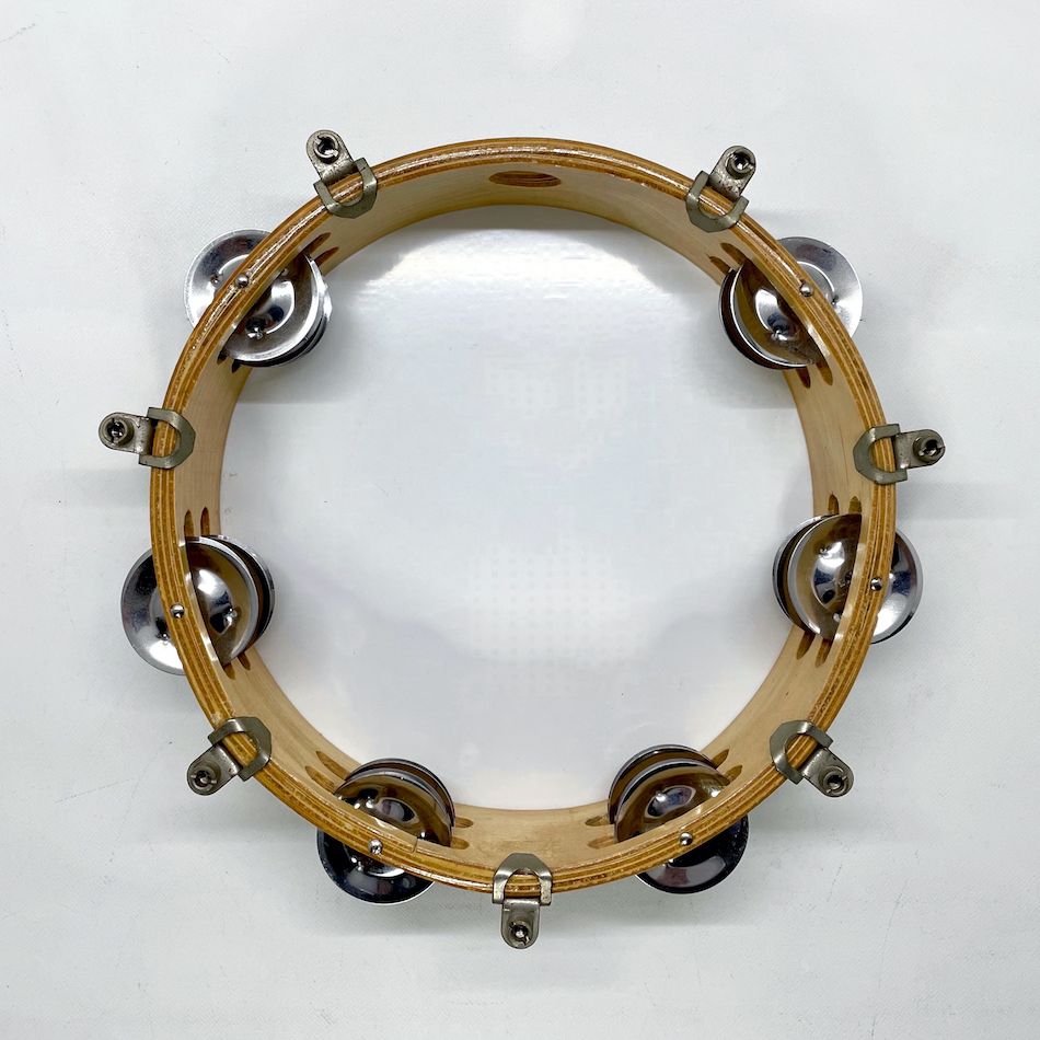 “福田繁雄”氏のデザイングッズの楽器を開発する中で試作され商品化には至らなかったタンバリン。