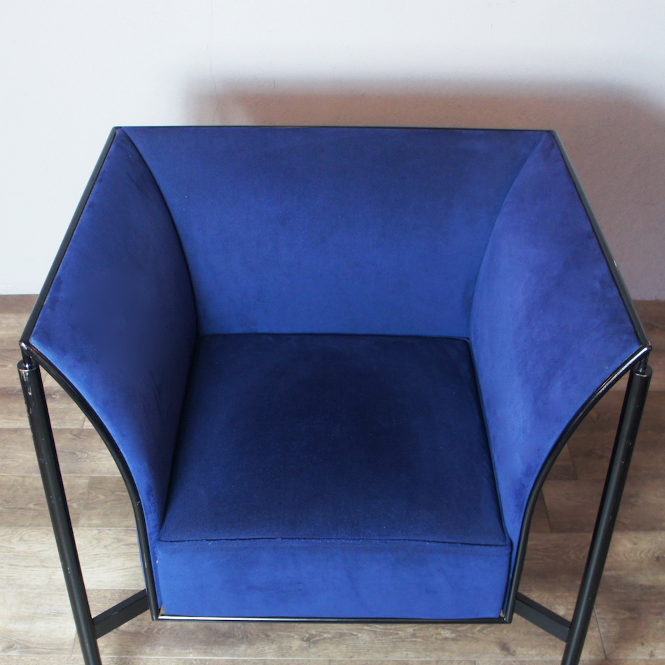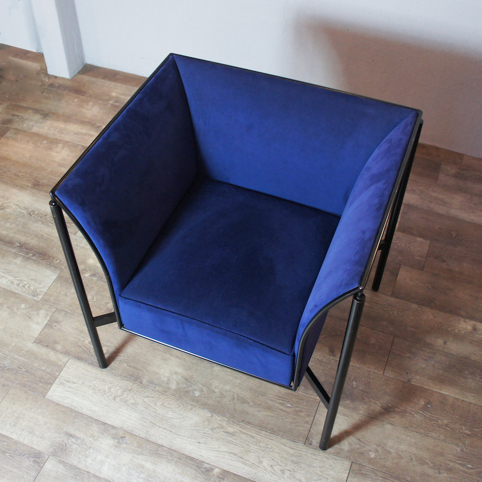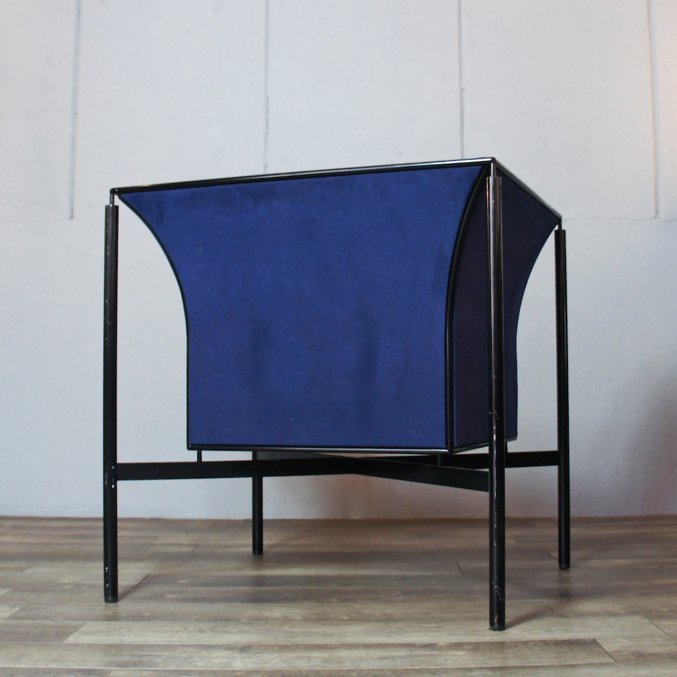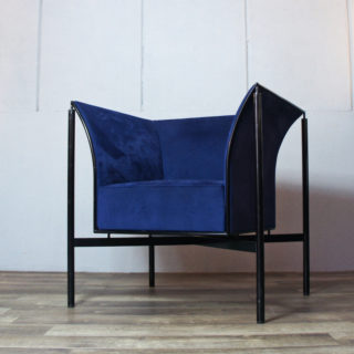 1986年に発表したメッシュマテリアルの”NY ll Chair”のフレーム構造に人工スウェード生地を張り込んだパーソナルソファ。