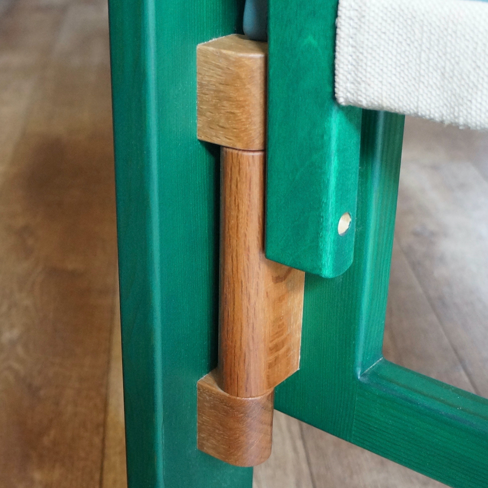 ヒンジに金属では無く樫の木材を採用、軽さを重視した米松材のフレーム、シート部の素材加工の工夫などディテールの追求と、カラーバリエーション設定など製品としての完成度を高めます。