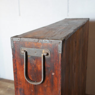 150年前後という時代を経た品のため、木部の傷みや虫喰いは随所に見られましたが、できる限り清掃メンテナンスし、全ての抽斗底には和紙を敷き込んで実使用に支障の無いよう当店で仕上げ直し済み。民芸やクラフト系の小物との相性も良く、ハンドメイドの趣味の小物を整理するインテリアなどナチュラル指向のインテリアとのマッチングも楽しめそうです。<br>