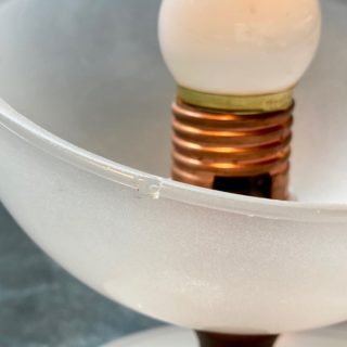 ガラスシェード下部の縁に幅4mm程のチップがありますが、上のシェードを被せると完全に隠れる箇所です。