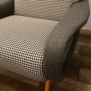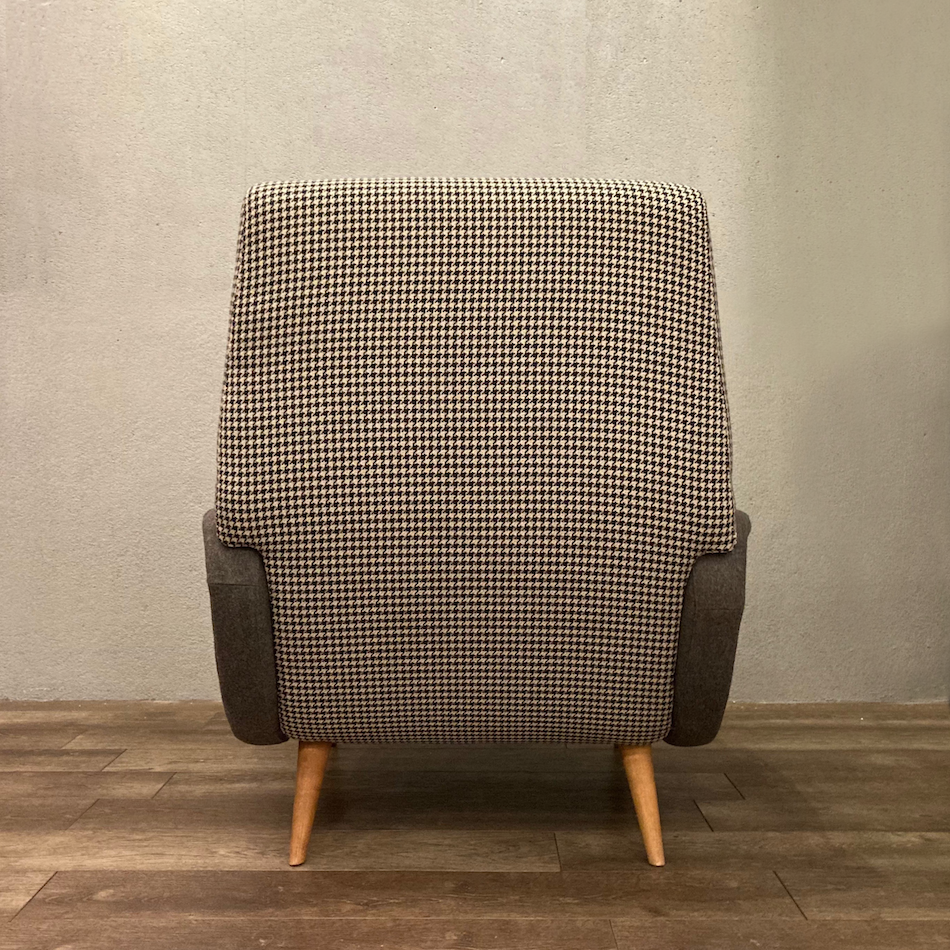 販売にあたり本家”Lady”のアイコニックな柄である<千鳥格子>に<ダークグレー>をアレンジした2種のファブリックで新規張替え。美しいフォルムがツートーンのコントラストでさらに引き立ち、トラディッショナルでジェントルなイメージに仕上がっています。