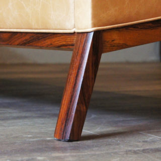 ローズウッド製のフレーム、総革張りにクッションインナーは羽毛。
