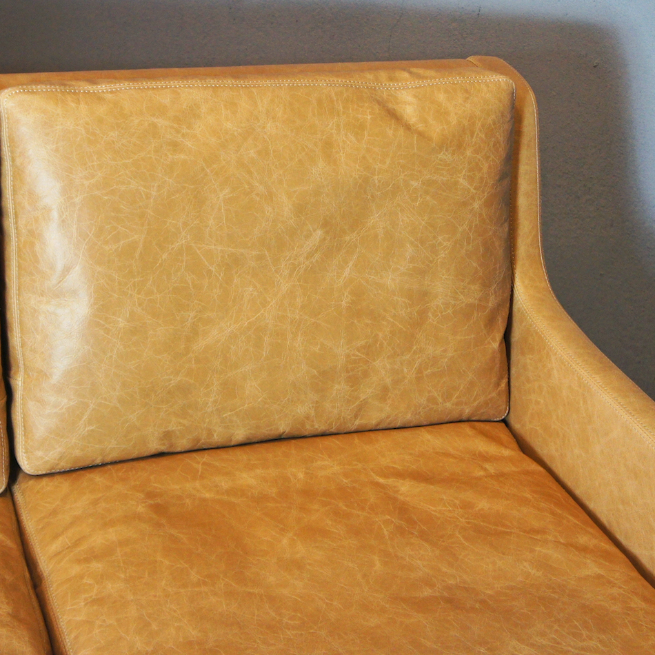販売にあたり、ウェービング新規交換及び総本革で張替えし、ムラ染めヴィンテージ加工のサンドベージュレザーでいっそう風格のあるプレステージクオリティーに仕上がっています。