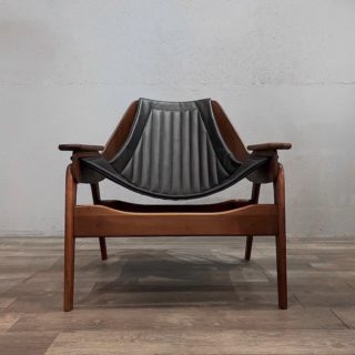 1964 U.S. “Jerry Johnson” Design Walnut Leather Sling Chair