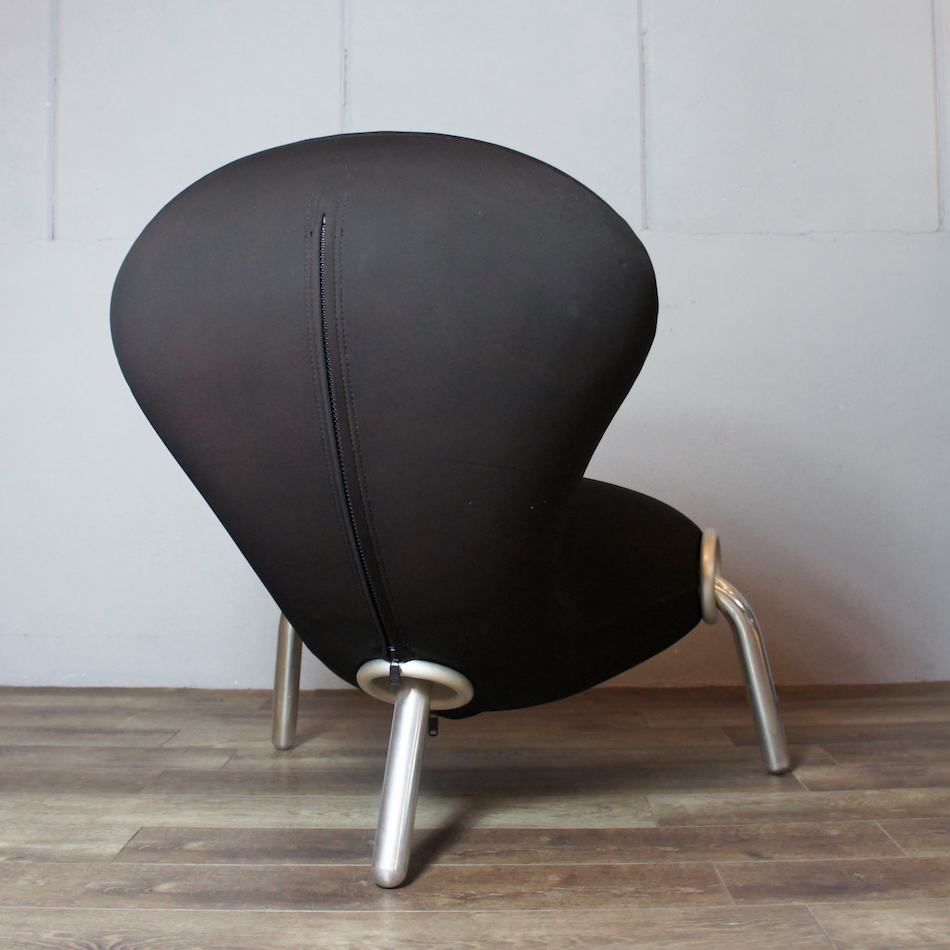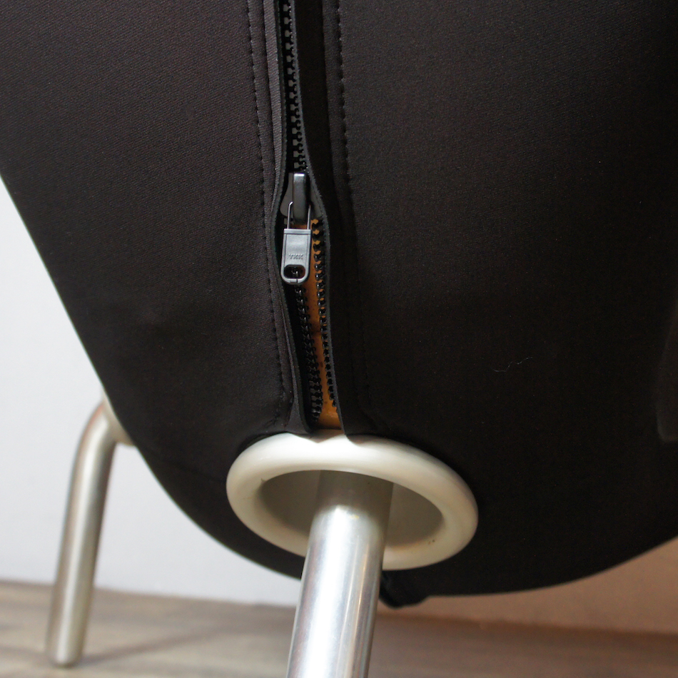 「エンブリオ=胎児」を意味するネーミングの通り、高反発ウレタンの塊でできたラウンドフォルムの本体をウェットスーツ素材でカバーリングし、アルミ製三本脚で支える個性的なルックスは、ニューソンデザインの椅子の中でも最もポピュラーなアイテム。