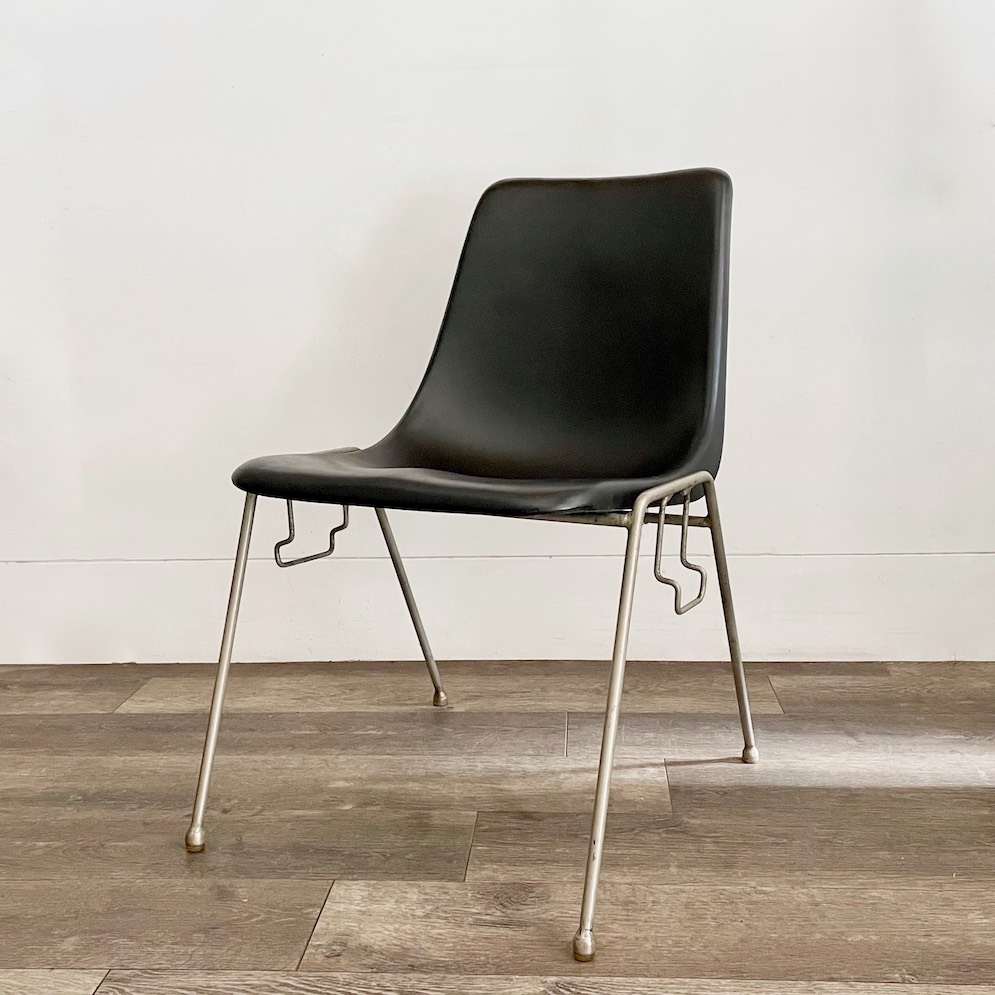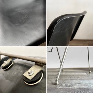 現在でも中空パイプの脚を持ったコトブキのシェルチェアは多数見かけますが、このチェアは日本の家具量産化黎明期を思わせる特徴を全て有した、日本のシェルチェアの原点とも言える個体です。
