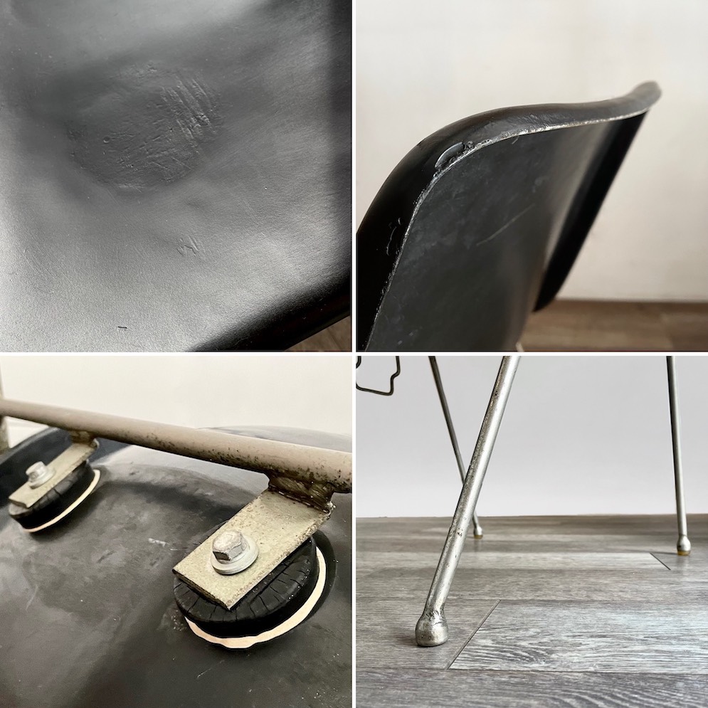 ※座面中央左付近に直径10cm程度の成形時の縮み癖の様な跡あり、後脚先端のゴムカバーがなくなっています。
