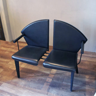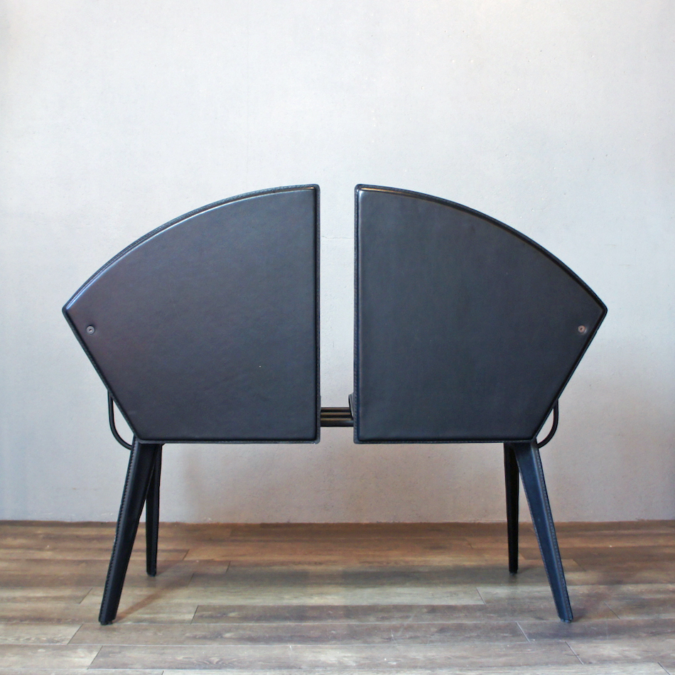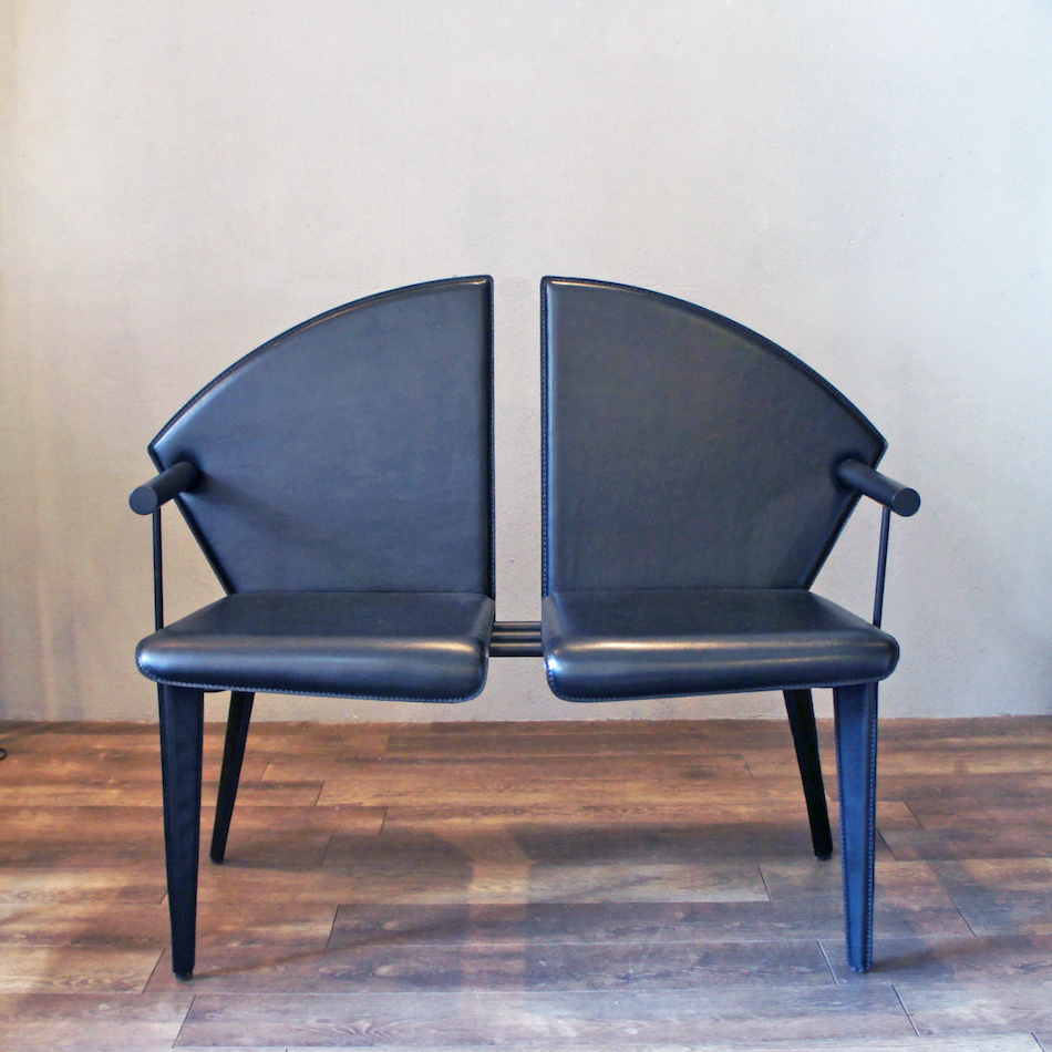 バック、シート、レッグは全てブラックレザーで覆い、アーム部と、僅かに覗くスチールロッドのフレームまでも全て黒一色にまとめたクールなルックス。