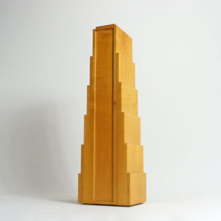 小さいながらも、同時代の”内田繁”のファニチャーを彷彿させる80年代典型デザイン。また、そびえ立つポストモダン建築のようなルックスはオブジェとしても魅力充分です。