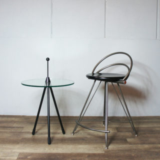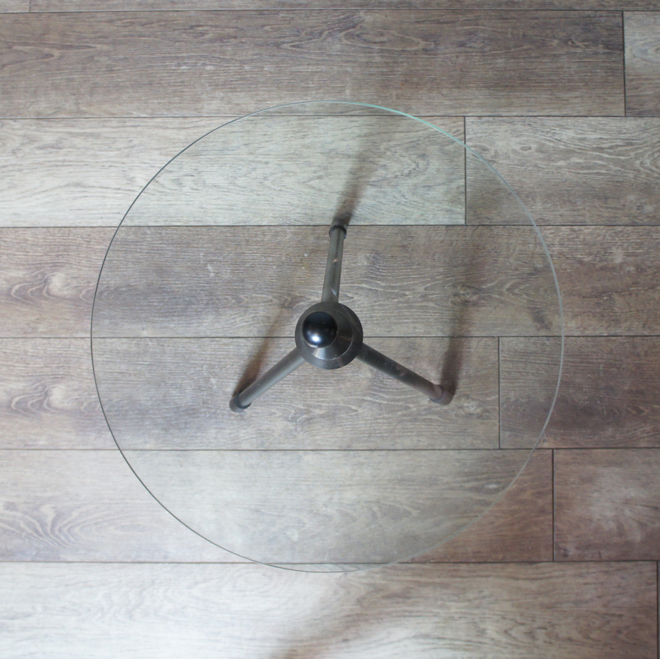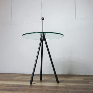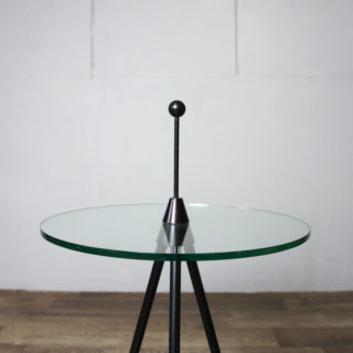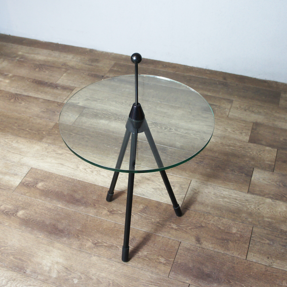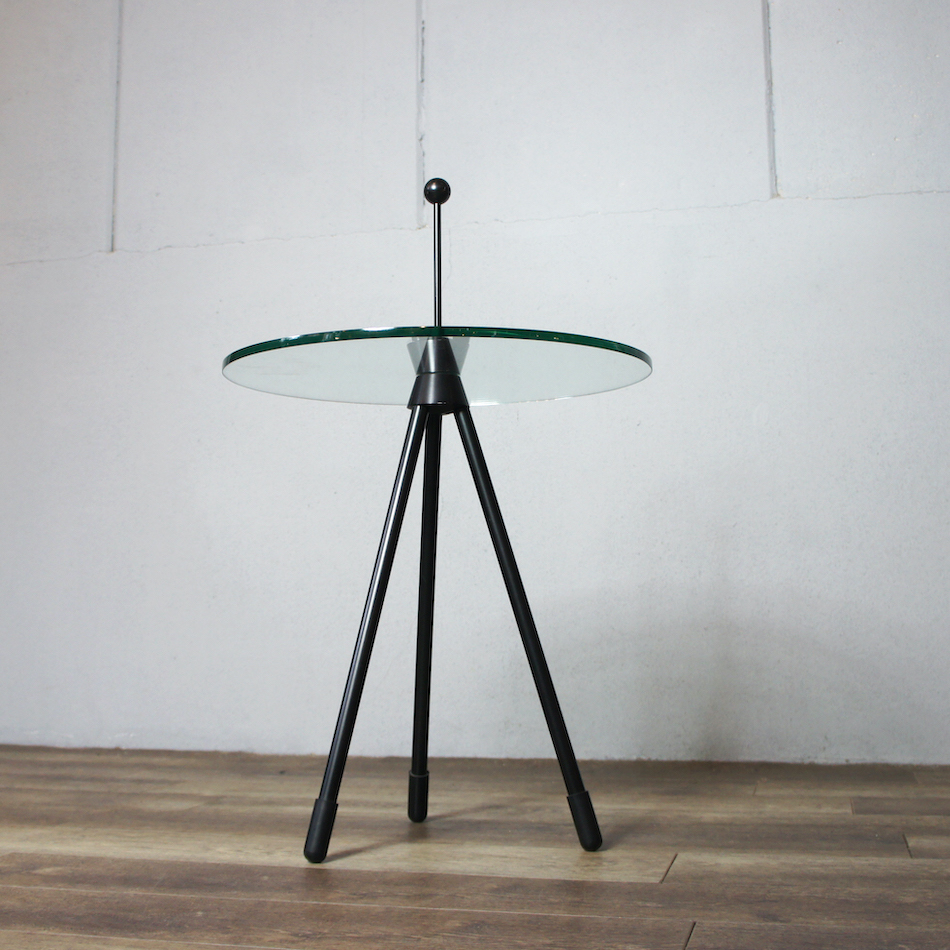 80年代のイタリア製品と思われるトライポッド/三本脚のラウンドガラスサイドテーブル。