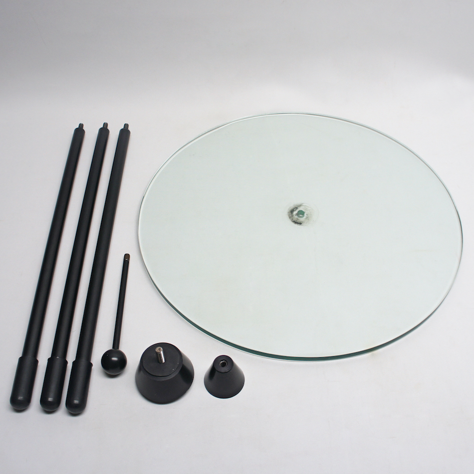 脚、ジョイント、ガラス天板、ハンドルシャフト、ボールグリップのパーツで構成され、工具を使わずねじ込みで容易に組立分解ができますが、各パーツの素材、強度やネジ込み精度と仕上げなど、どこを取っても非常に高品位な造り。華奢な感じの全くない上質な製品です。