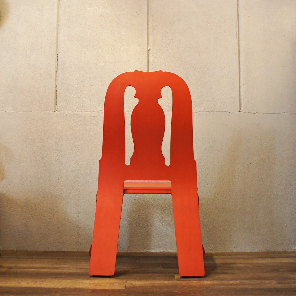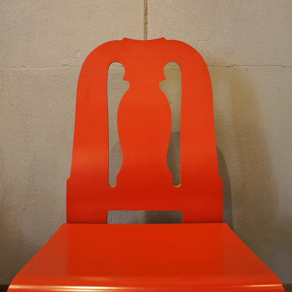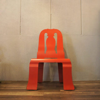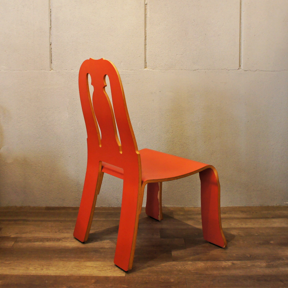 古典的なクイーンアン様式の椅子のフレームを平たく押しつぶしたような斬新なデザイン。エッジの効いたデザインは”Less is bore”(少ないほど、退屈である)と言い放った氏の信条を体現するポストモダンファニチュアーのマスターピースです。