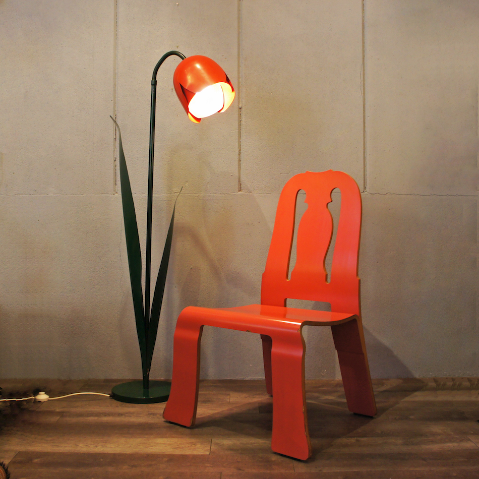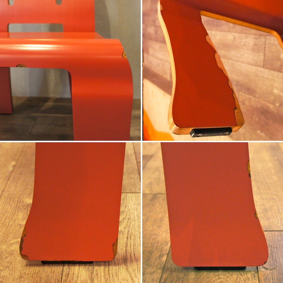 表面のメラミン合板の剥がれや打傷が随所にありるため低めの価格設定としています。流通する機会は限られ、海外マーケットでの価値が年々上昇し続ける”Queen Anne”チェアですので、状態を考慮しても二度と無い条件だと思われます。