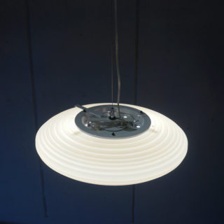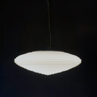ダイヤモンドのフォルムにヒントを得た乳白のガラスシェードが2灯の光源を均質な暖かい光に変換、刻まれたレイヤーラインが華麗なシルエットを描いて空間に浮かび輝きます。