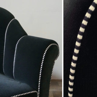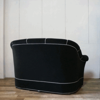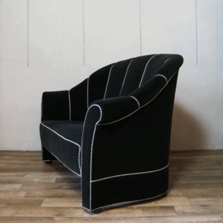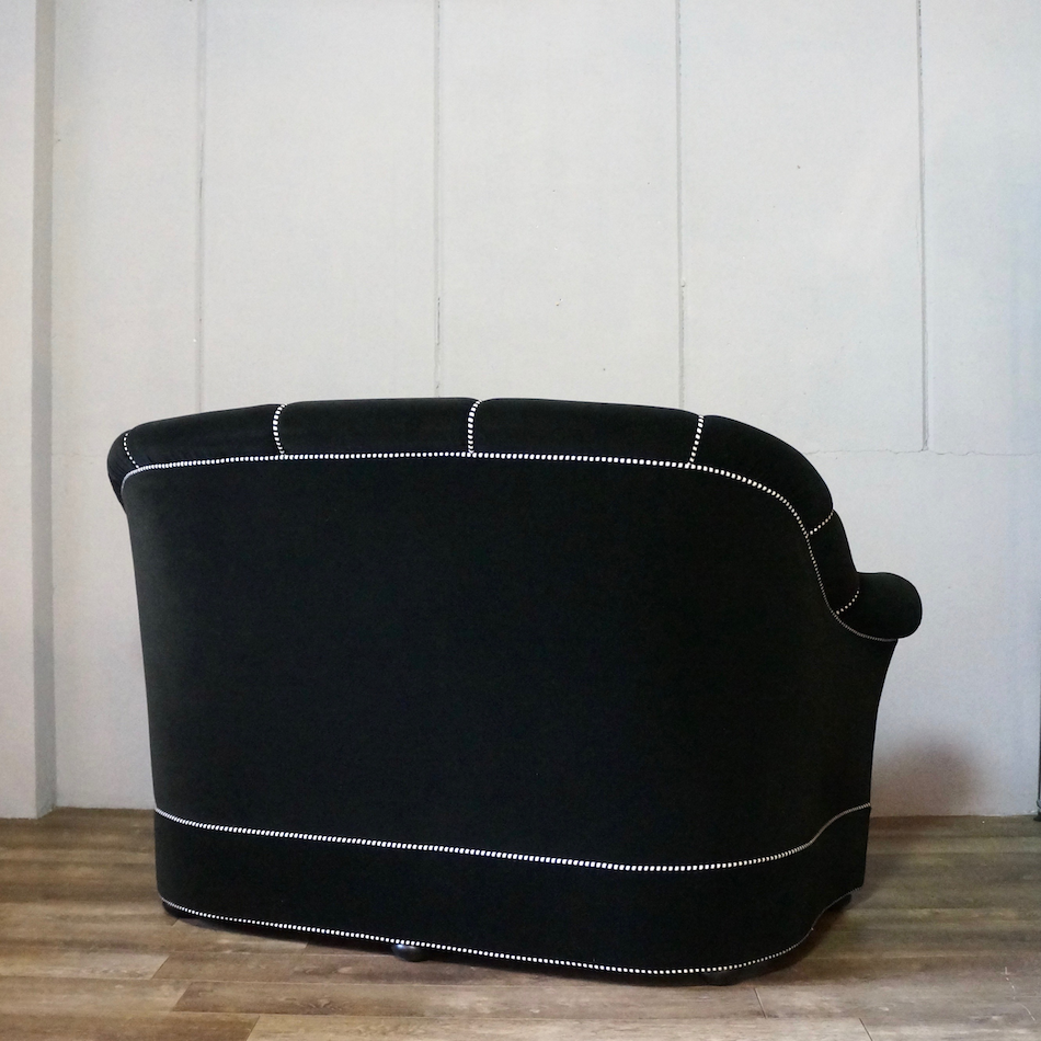 シルキーブラックのベルベット生地を縁取るステッチラインとのコントラストが、優美な曲線フォルムをいっそう美しく際立たせる品格漂うデザイン。