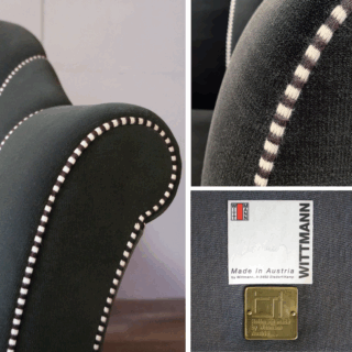 上質で繊細な張地の縫製、白とコゲ茶の糸を交互に刺繍したパイピングステッチ、心地よい適度な硬さの着座感など、”ヴィットマン”社の丁寧な手加工技術が妥協のない高品質を付加。