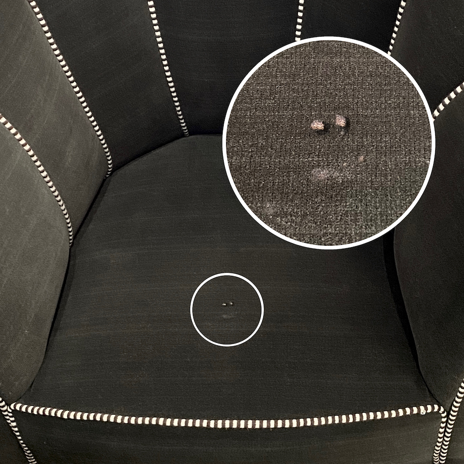 ※販売はA,B各1脚ずつ、コンディションも良好ですが、Bには座面中央付近2箇所に2mm程の丸い別珍の起毛禿げと薄い染みが有ります。