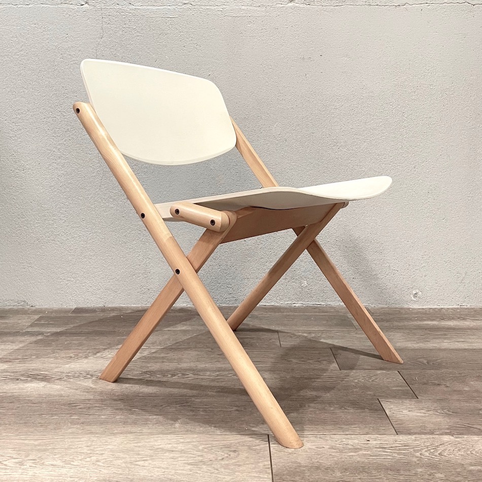 同じく良く似た”深澤直人”ディレクションの”マルニ HIROSHIMA”フォールディングが発表された2010年より以前の1990年代頃のものですが、様々リサーチしても製品の情報に辿り着けず詳細は不明です。