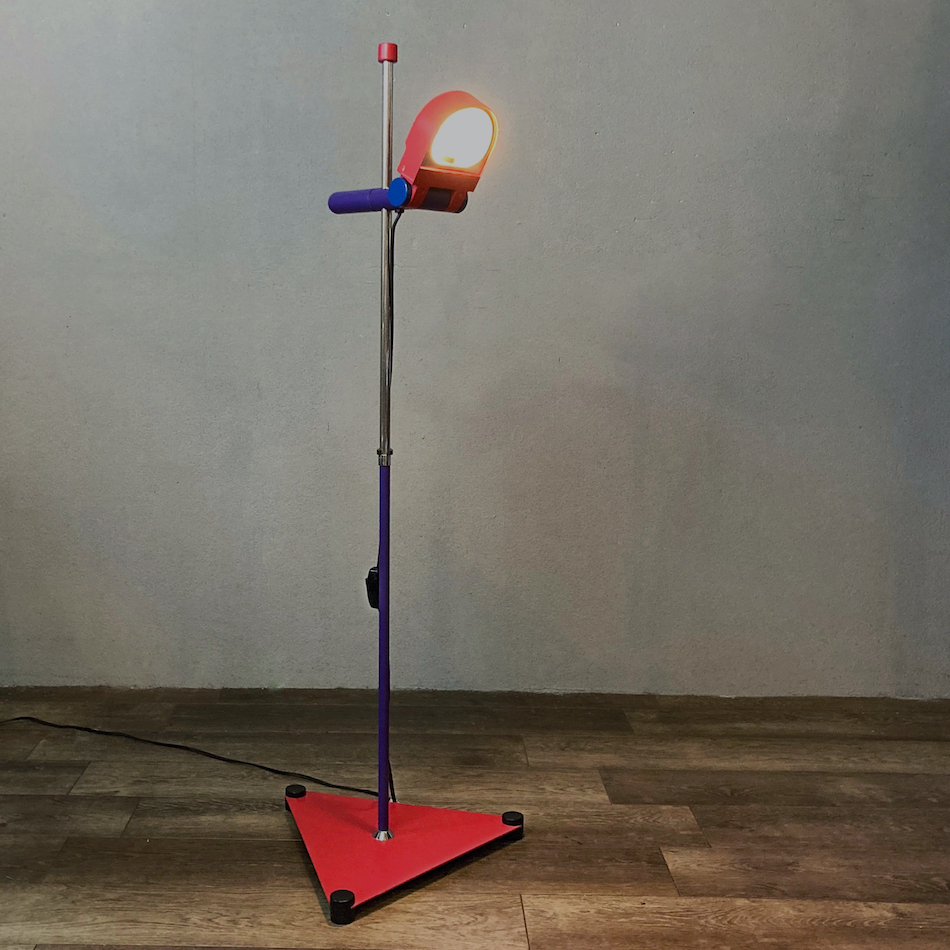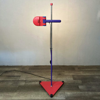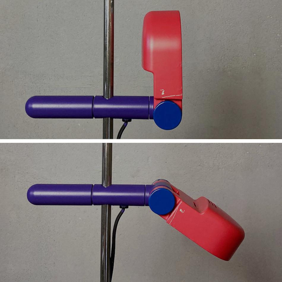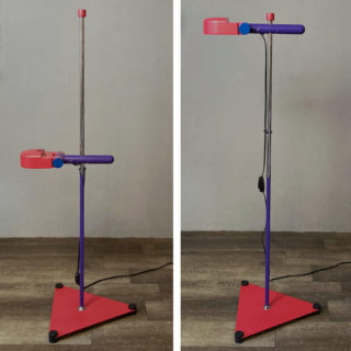 元はブラック1色であったカラーは、以前入荷した同モデルのテーブルライトと同色に当店でリペイントしたもので、黒川氏らしい80年代ポストモダンデザインの解釈を再現しました。