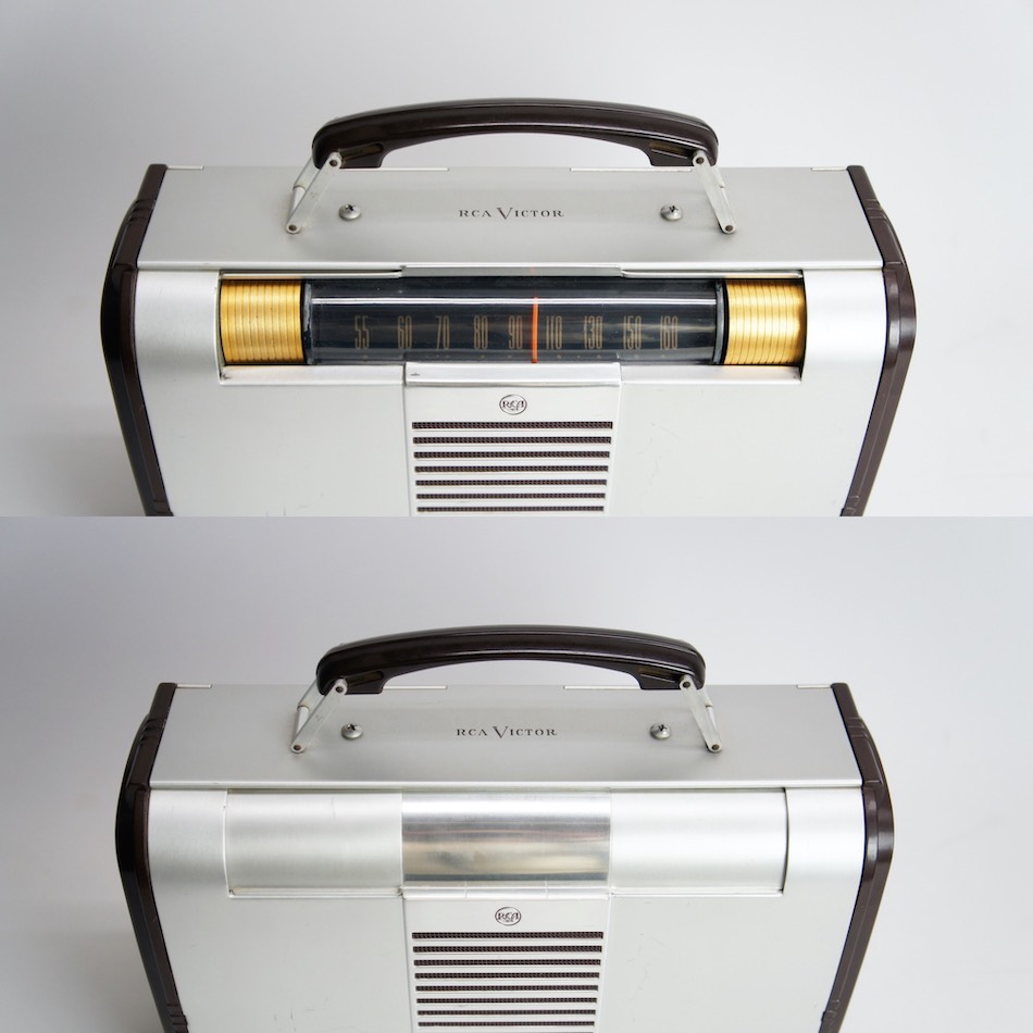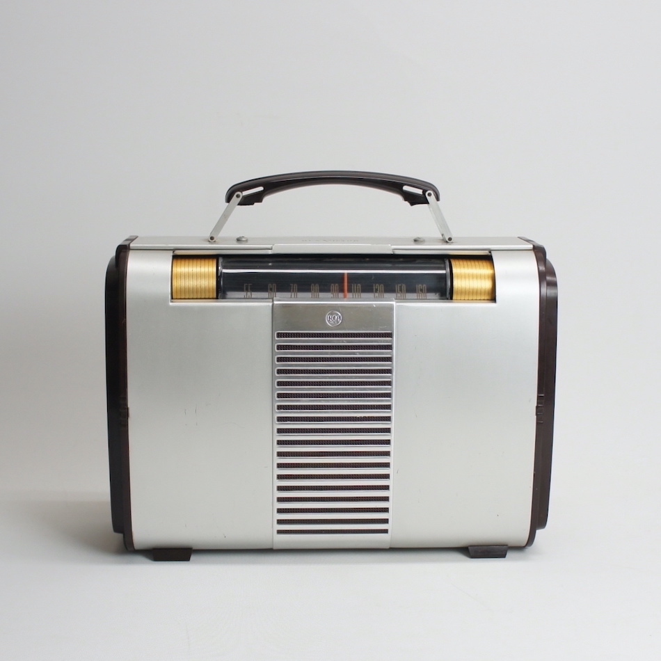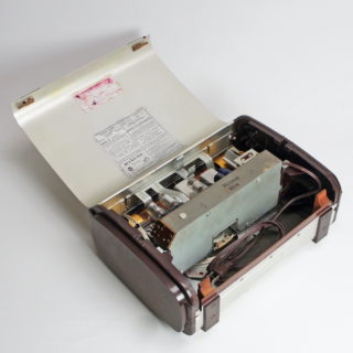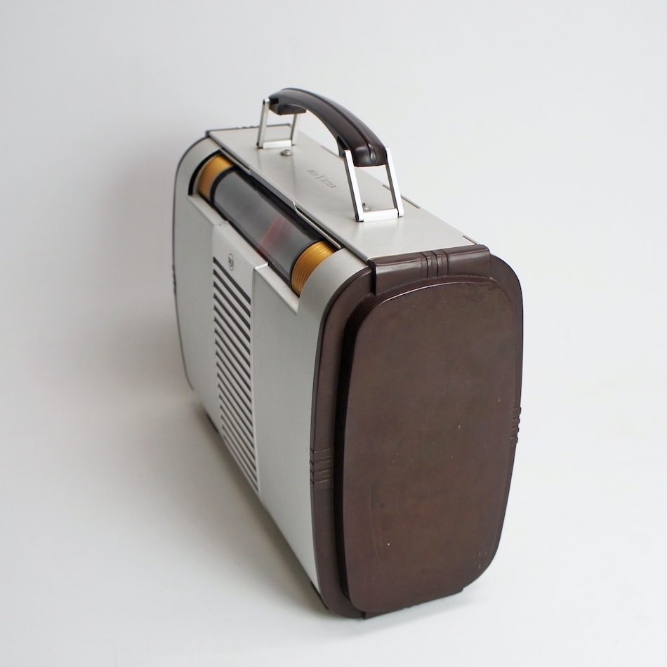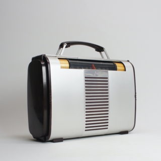 真空管ラジオの時代に「ポータブル」という課題を高次元でパッケージし、画期的なルックスで纏め上げた、”halliburton”や”Polaroid SX-70″と並びミッドセンチュリーの「名作」と称したい、知る人の少ないプロダクトデザインです。