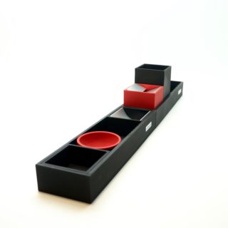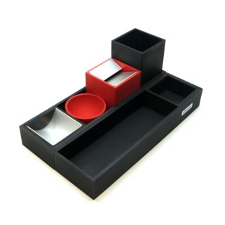カラーはブラックをベースにラウンドトレーとアシュトレーに差し色のレッドを配した組み合わせ。